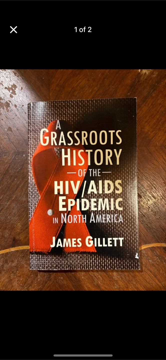 A book about the history of the HIV/AIDS epidemic. The title says it's a grassroots history. A red ribbon on the cover, with white text. I hope this book helps you gain some new knowledge.
