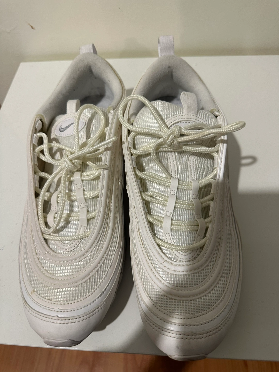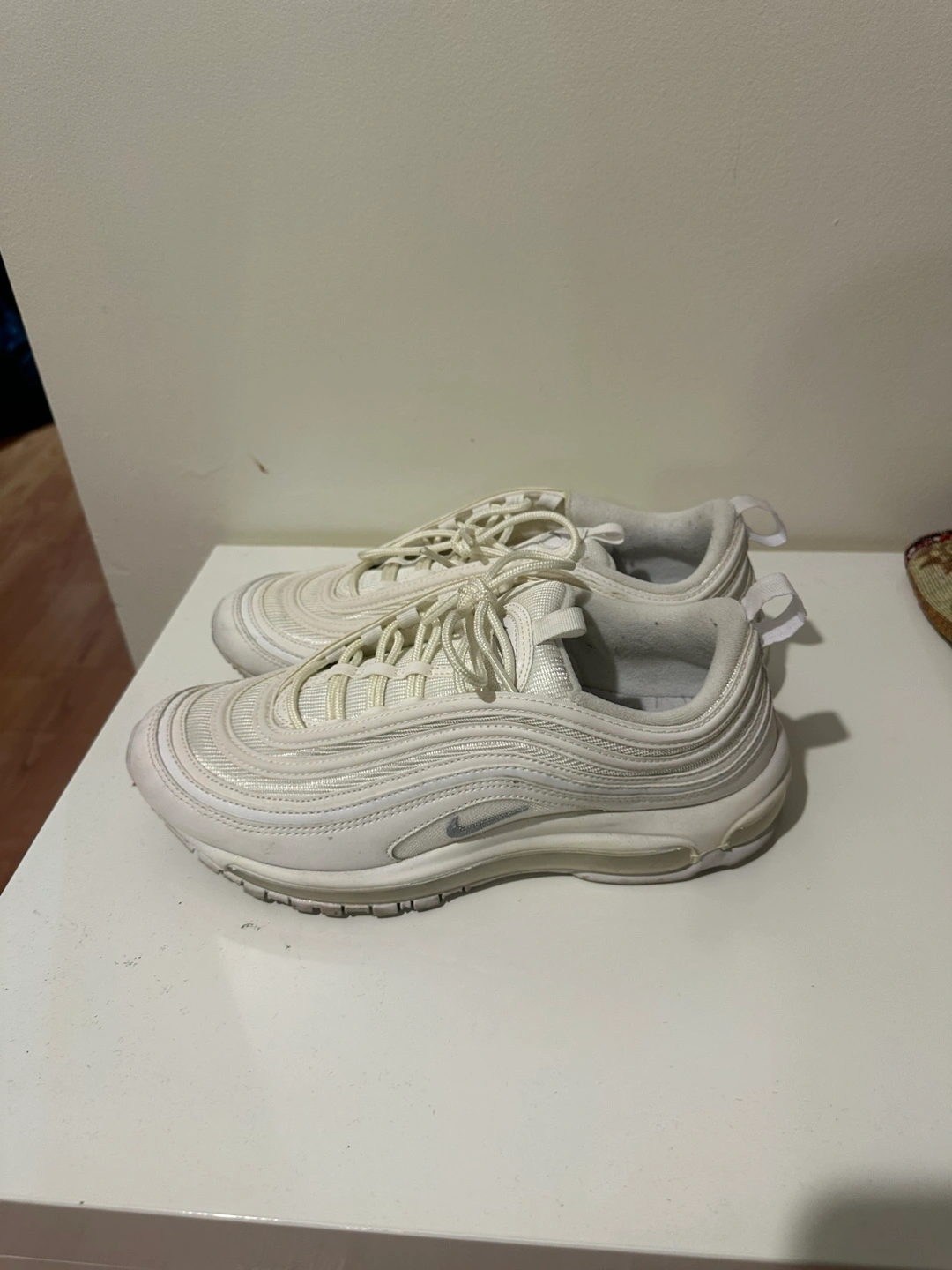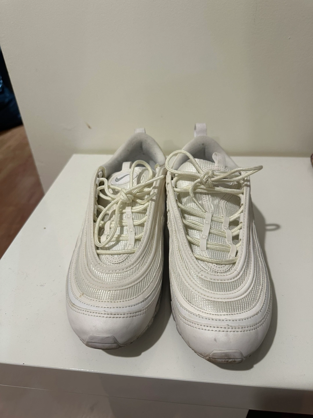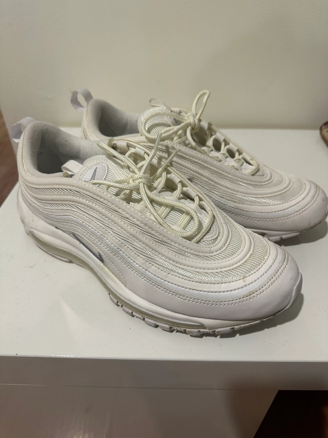 Pre-owned Nike Air Max 97 running shoes. Off-white colour. Women's size US 9. Minimal wear.