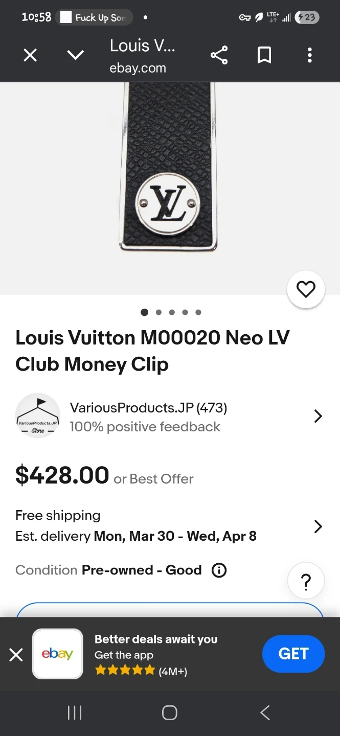 Buy & SellLouis Vuitton Money ClipLouis Vuitton Money Clip$220Genuine Louis Vuitton money clip with black textured leather and gold-tone hardware. Made in Italy. A sleek accessory to hold your cash.BrandLouis VuittonWHERE TO MEETCheck LocationView MapSELLERverifiedmattO'Neill600 reviews0 chats·0 favorites·11 viewsSEND CHAT TO SELLERHi matt! I’m interested in your listing.Hi matt! I’m interested in your listing.Get the Karrot app to chatSign In to chat