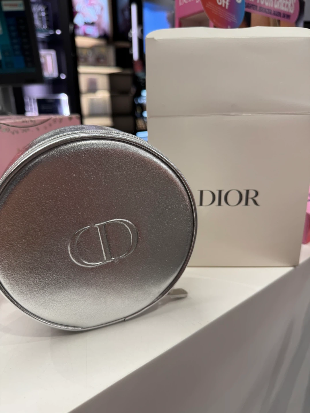Selling a Dior silver makeup bag that comes with its original box! It's in great condition and perfect for storing your makeup or skincare essentials. The bag features the iconic Dior logo on the front. If you're a Dior fan, this is a great addition to your collection!price is firm .
