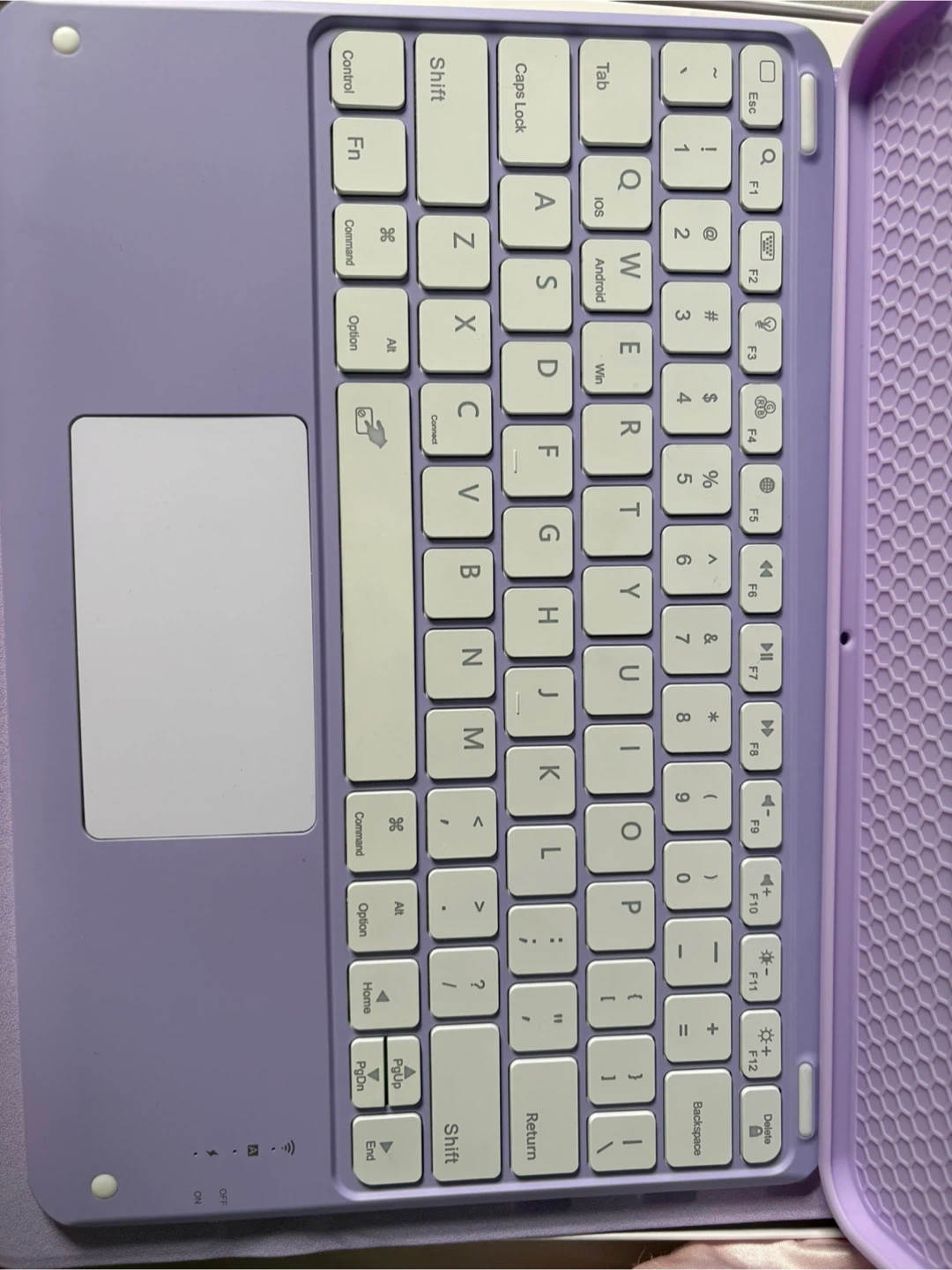 This RaymCraft wireless keyboard case comes in a vibrant purple colour. It's made from ABS, PU Leather, and Aluminium Alloy for durability. The case offers continuous working time without backlight for over 24 hours. This is great for anyone looking to make their tablet