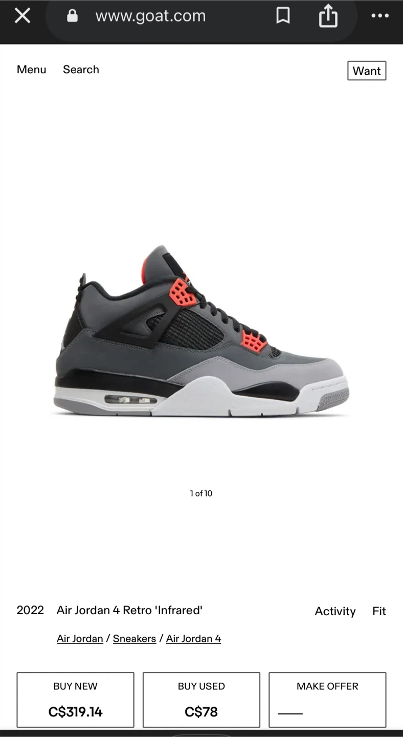 Air Jordan 4 Retro (GS) "Infrared" Size 6Y