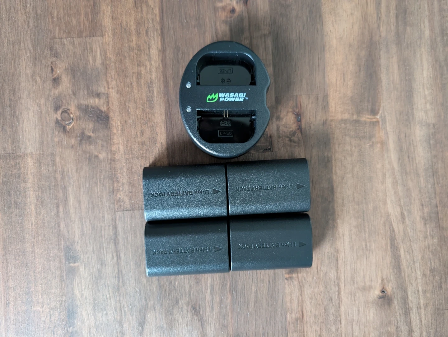 Power: 4x Batteries, Dual Charger, plus the AC wall adapter for studio work.