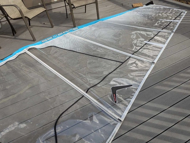 Sail has one large taped repair, otherwise in good condition. Rigs on a 460cm mast. I have lots of other windsurfing gear, some not yet posted. Let me know what you need, I might just have it.