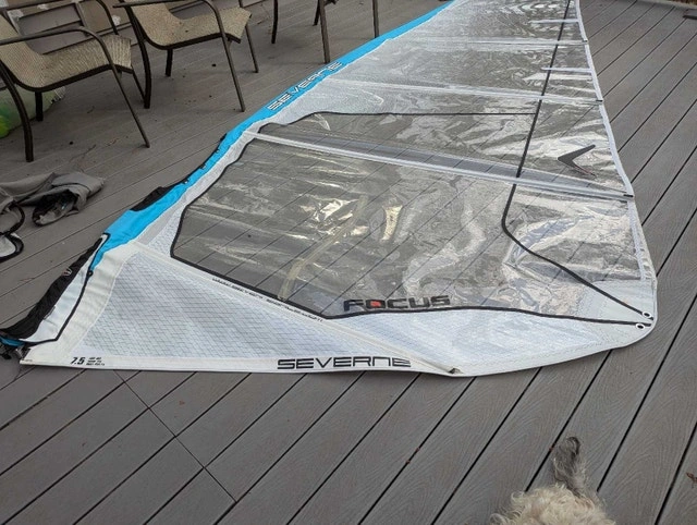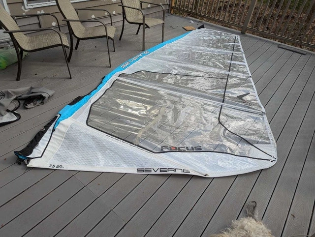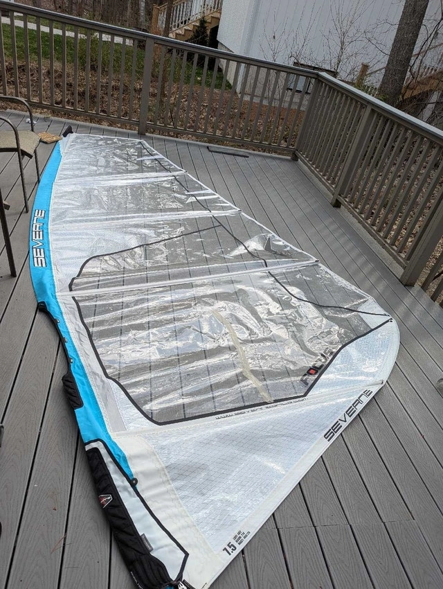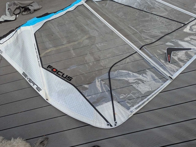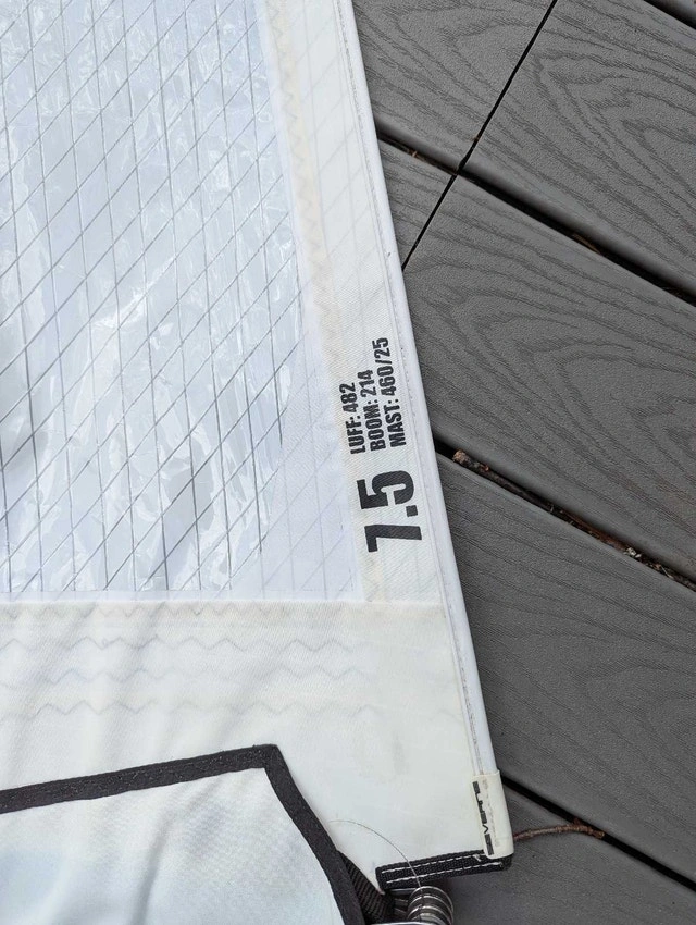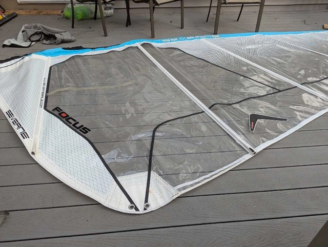 Sail has one large taped repair, otherwise in good condition. Rigs on a 460cm mast. I have lots of other windsurfing gear, some not yet posted. Let me know what you need, I might just have it.