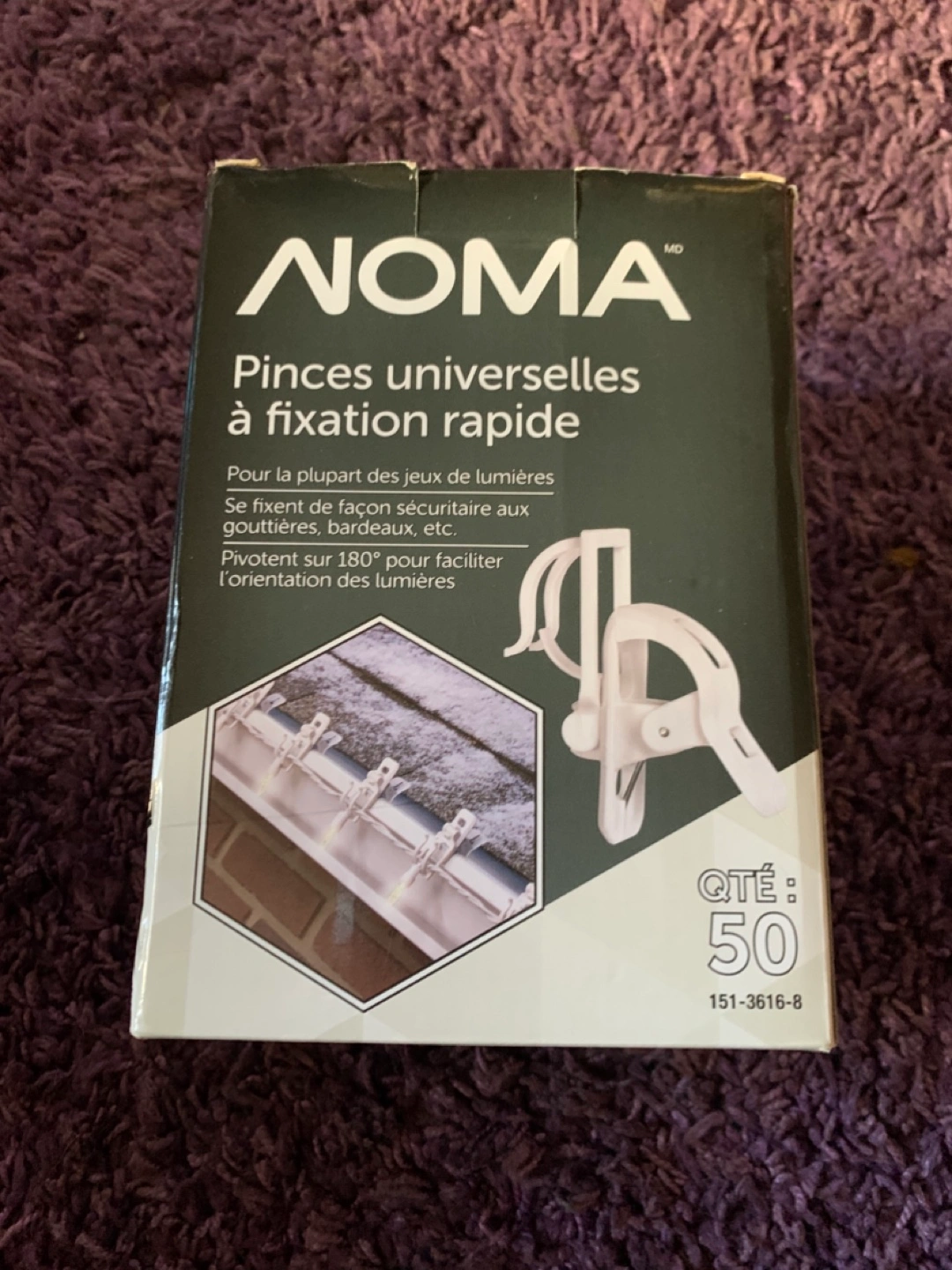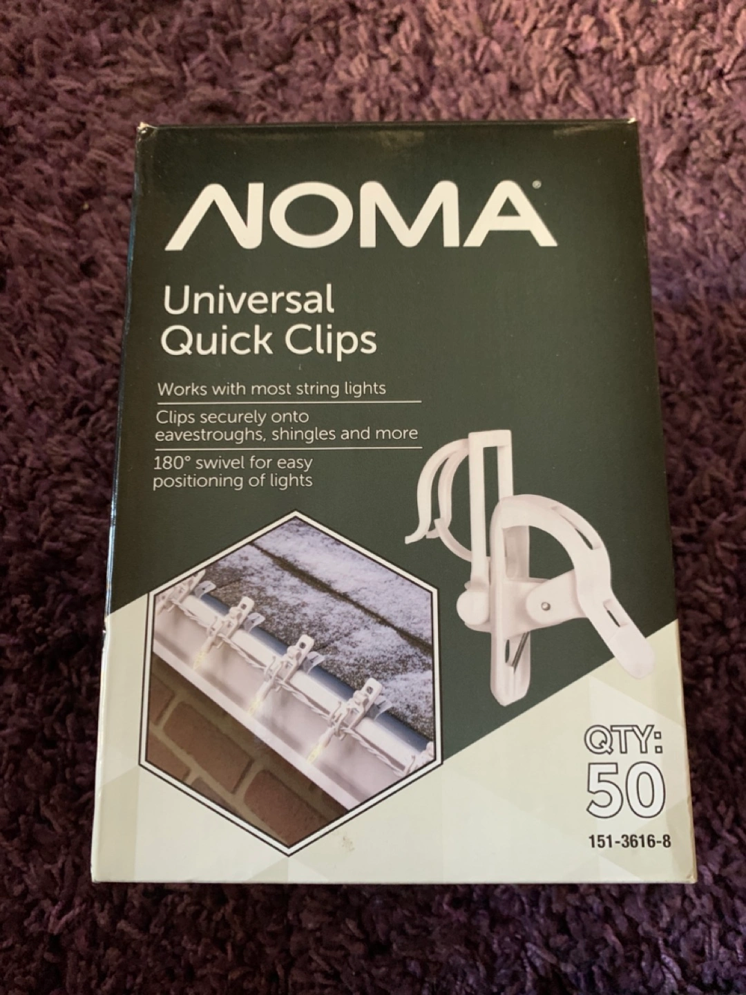 50 white plastic clips. Securely attaches to eavestroughs, shingles, etc. 180° swivel for easy positioning of lights. Great for Christmas lights.