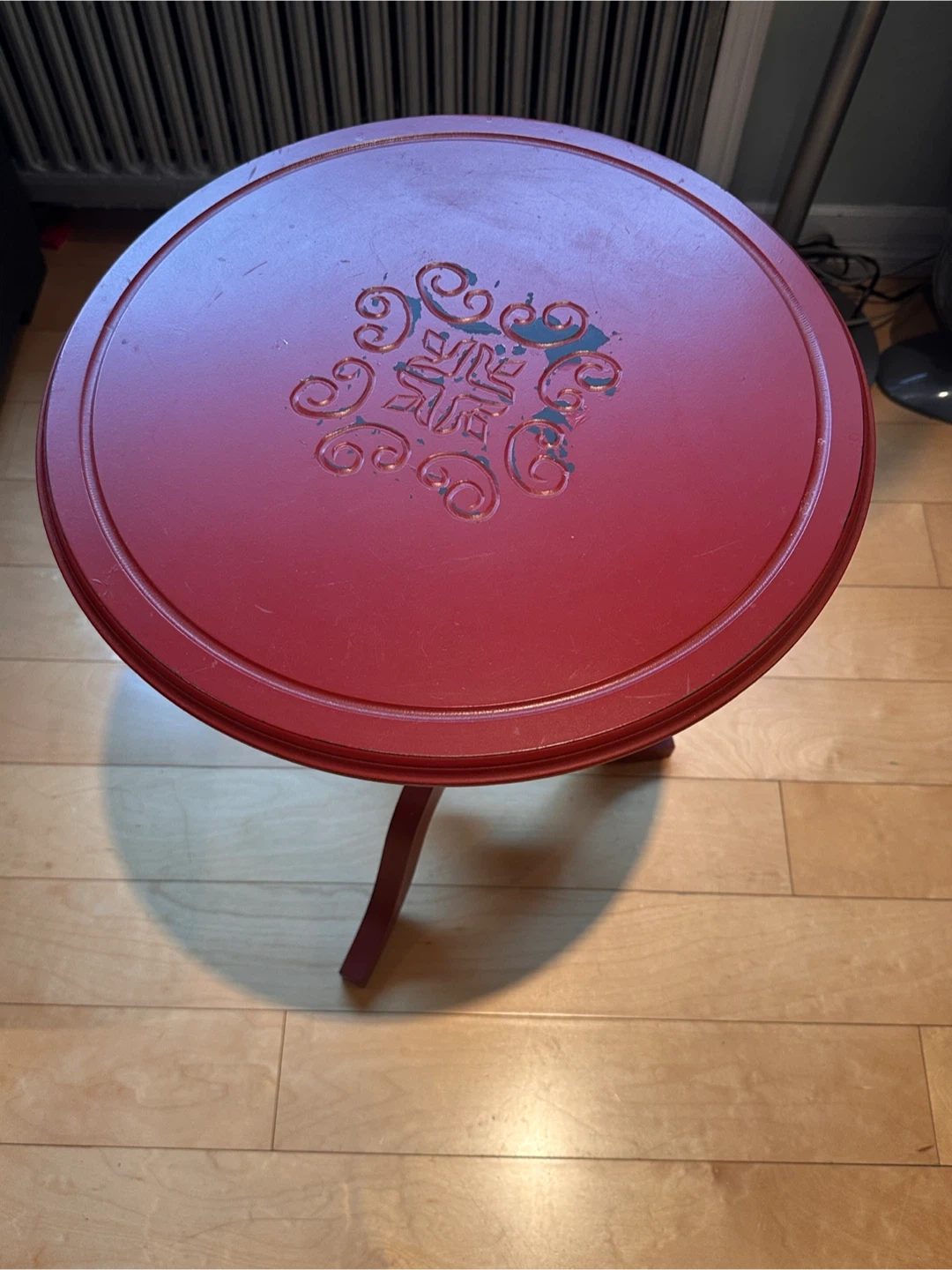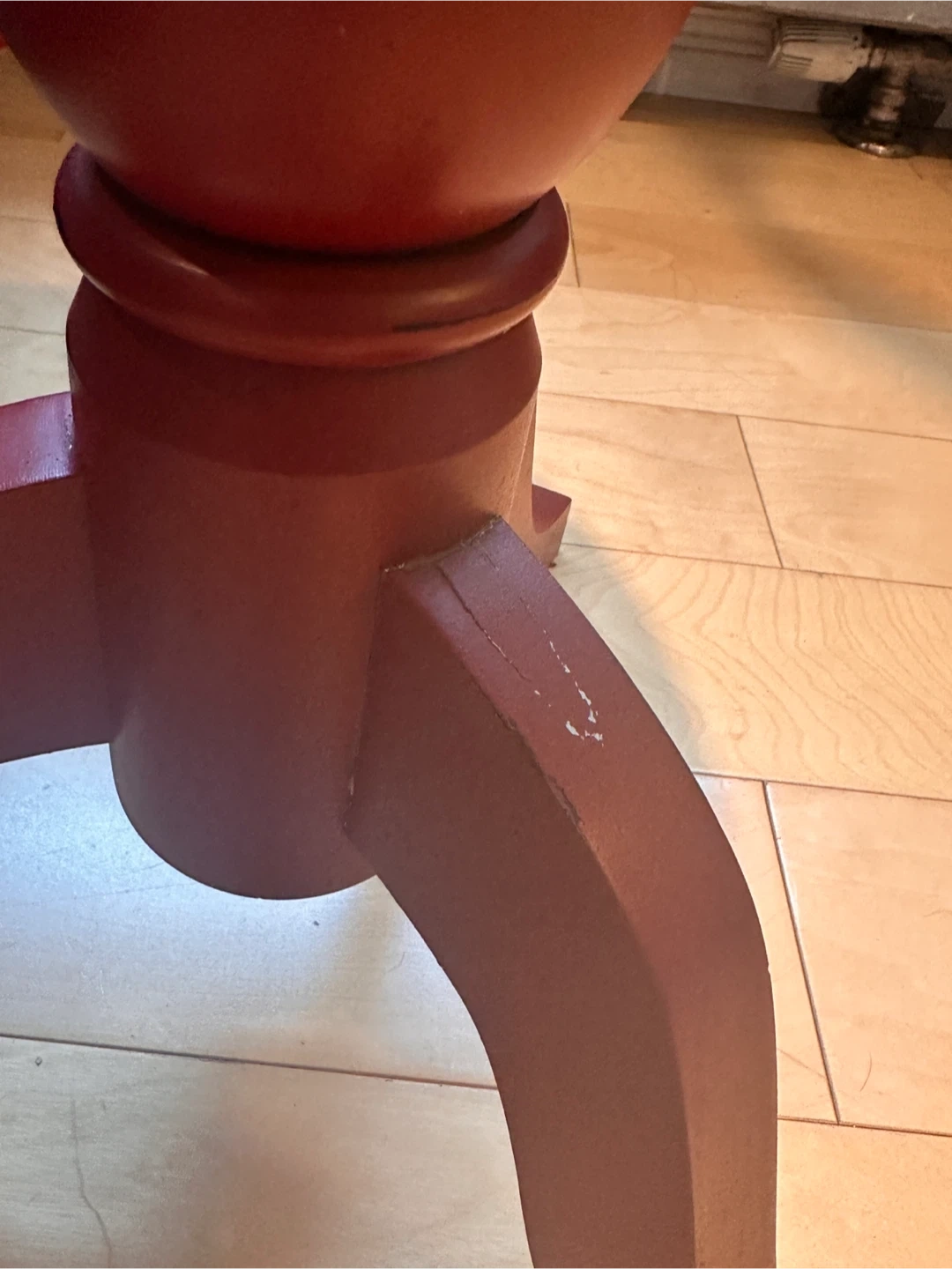 Beautiful and functional with a distressed antique look. Works great with almost any decor and colour scheme. One slight mark on one side, hardly noticeable, as noted in pics.