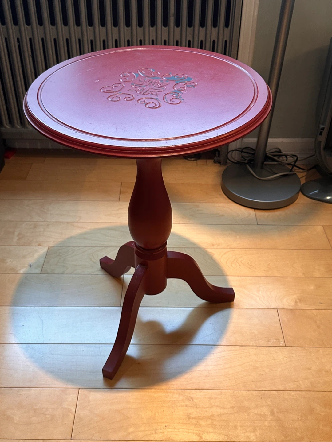 Beautiful and functional with a distressed antique look. Works great with almost any decor and colour scheme. One slight mark on one side, hardly noticeable, as noted in pics.