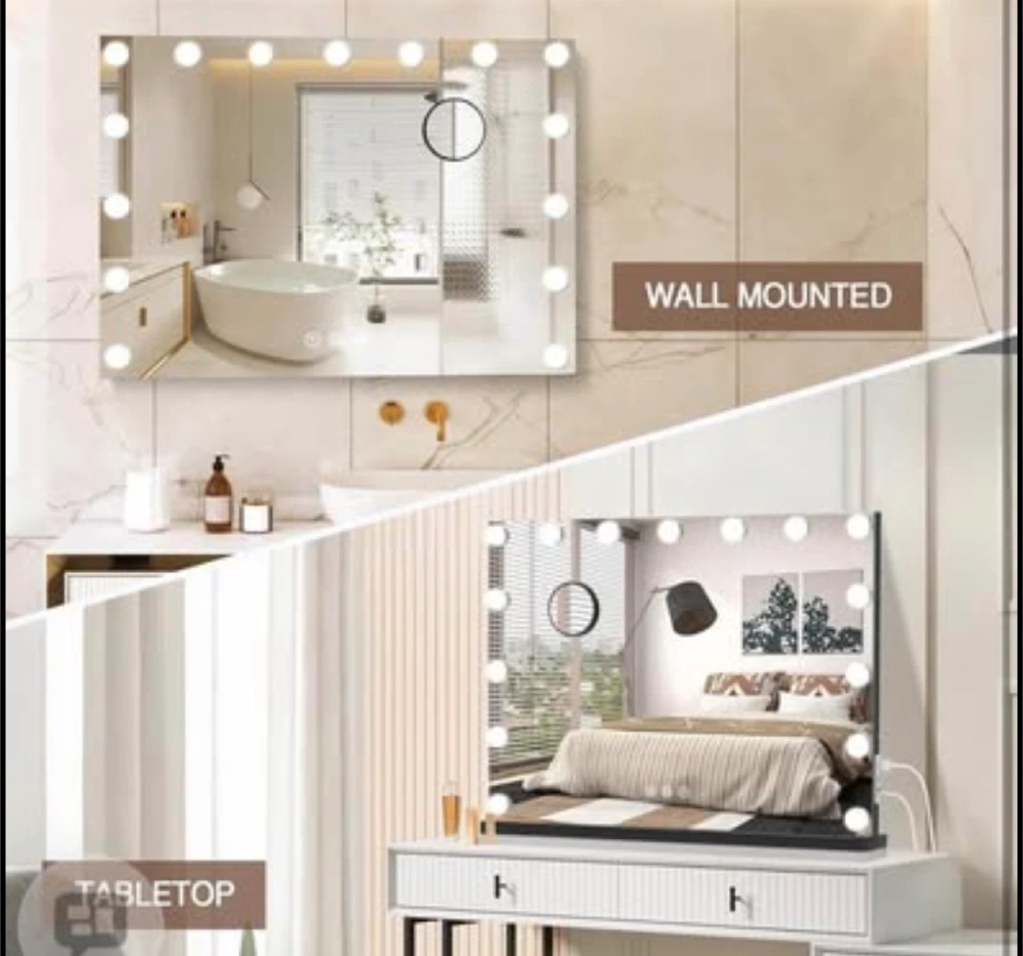 Lighted Makeup Mirror 19" L x 23" Light Hollywood Mirror with Detachable 10X Magnification Hollywood Vanity Mirror with Lights Smart Touch Control Hollywood Lighted Mirror with 15 LED Bulbs 3Colors