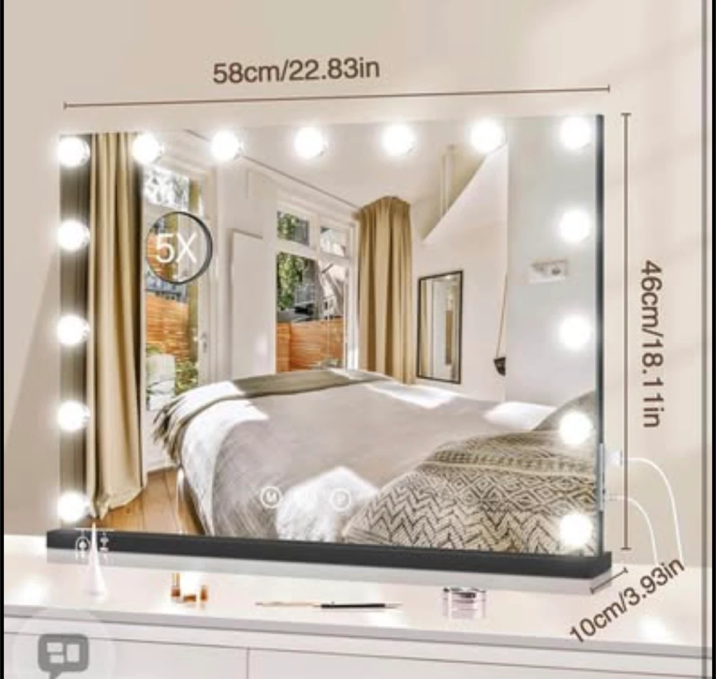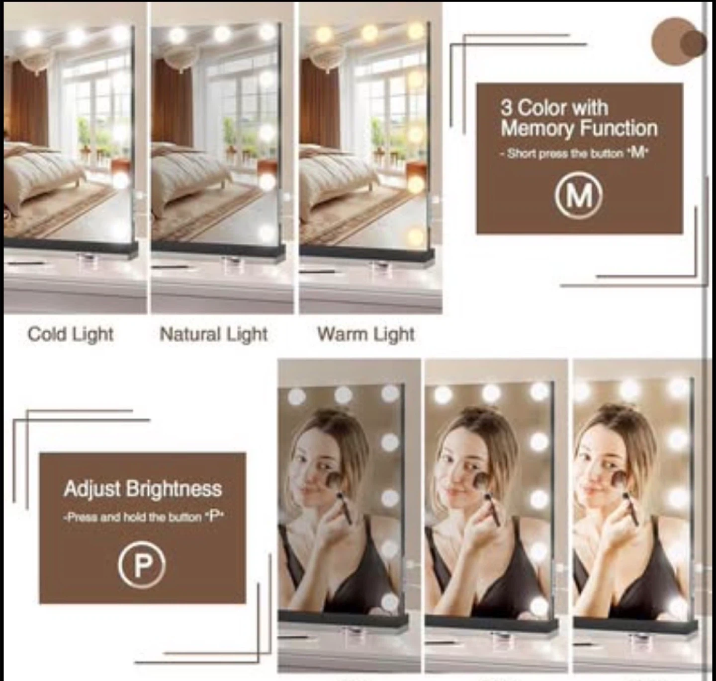 Lighted Makeup Mirror 19" L x 23" Light Hollywood Mirror with Detachable 10X Magnification Hollywood Vanity Mirror with Lights Smart Touch Control Hollywood Lighted Mirror with 15 LED Bulbs 3Colors