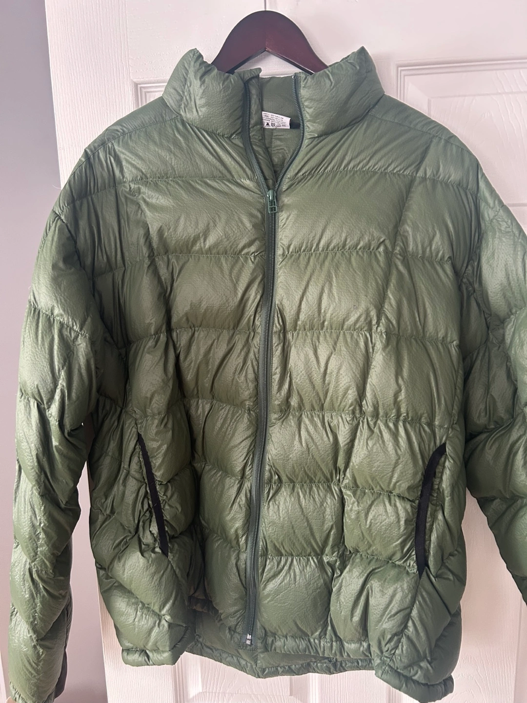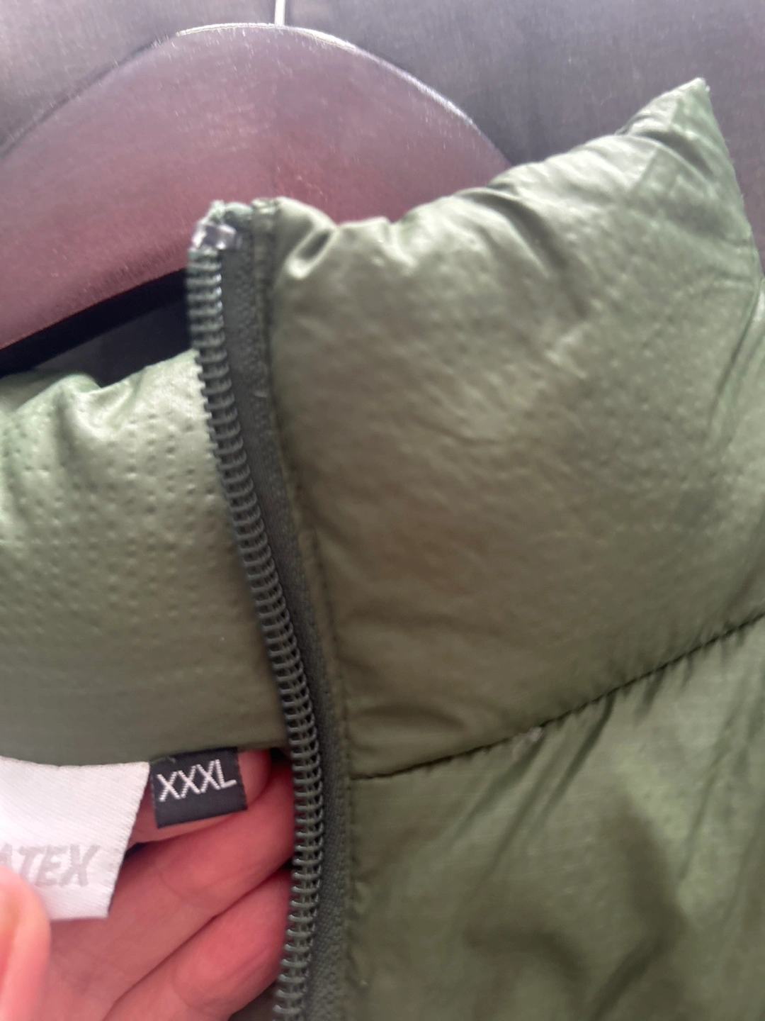 2XL Green colour. Full zip closure. Nylon shell and lining. Duck down and feather fill. *no further reduction *