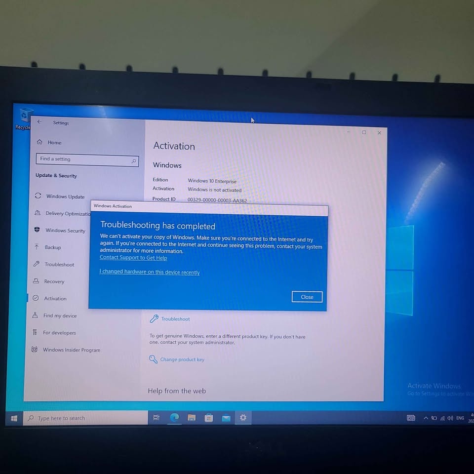 Operating System: Windows 10 Enterprise (Not Activated - Activation Troubleshoot failed, as shown in pictures). You will need a product key to activate Windows fully.