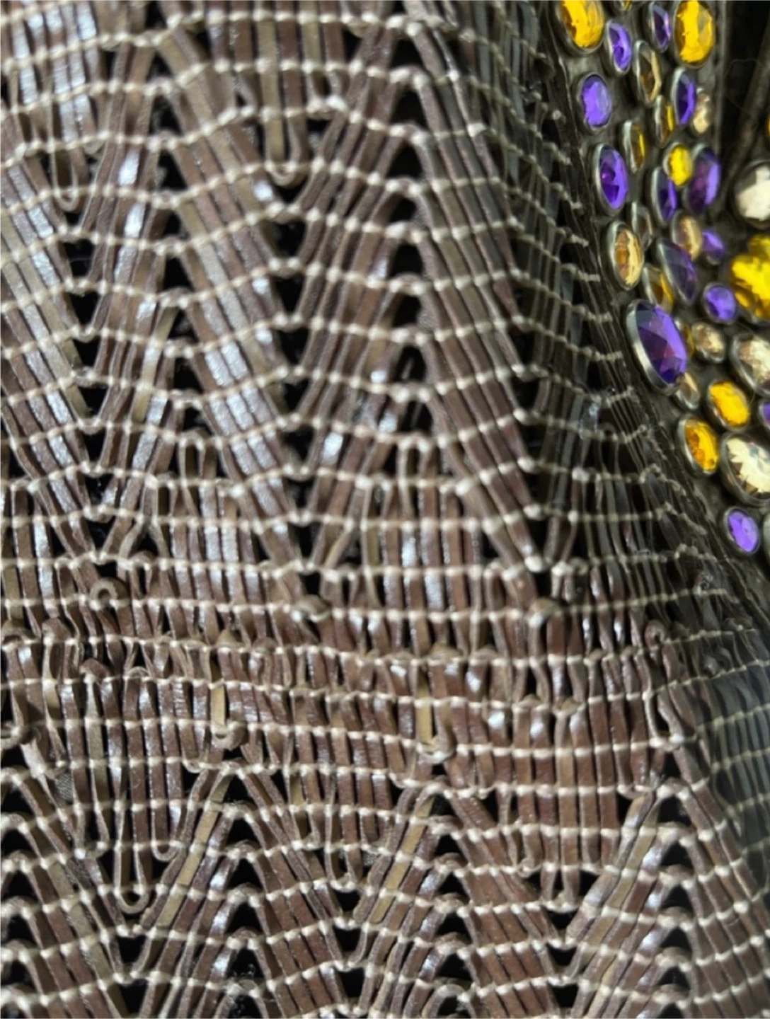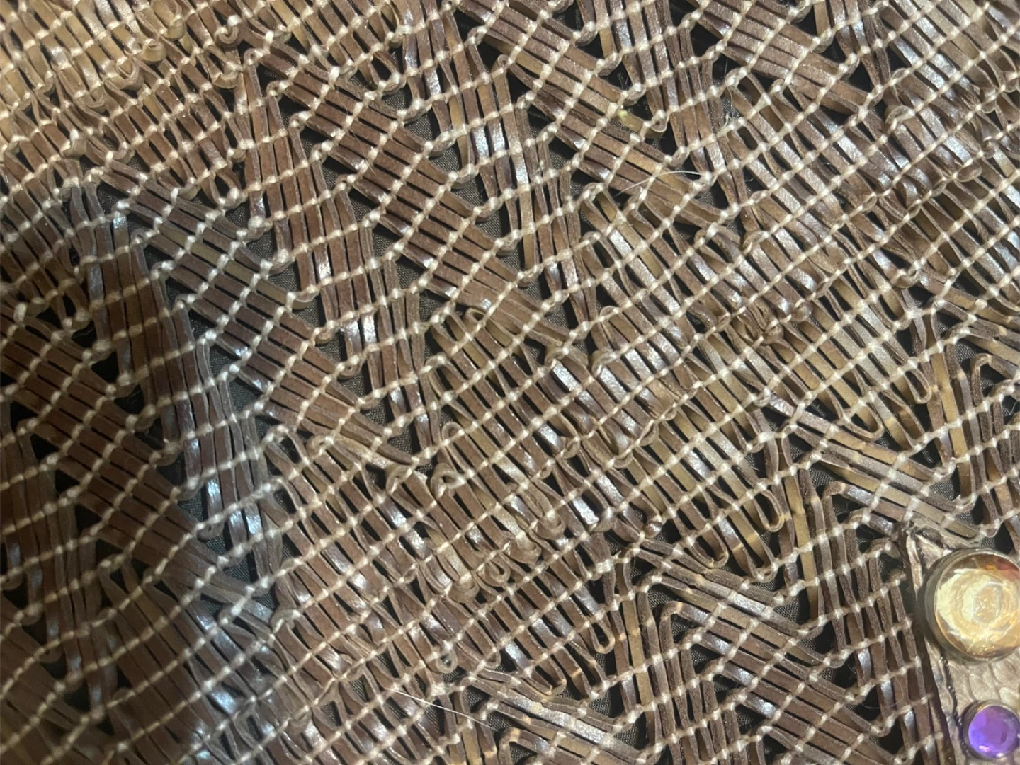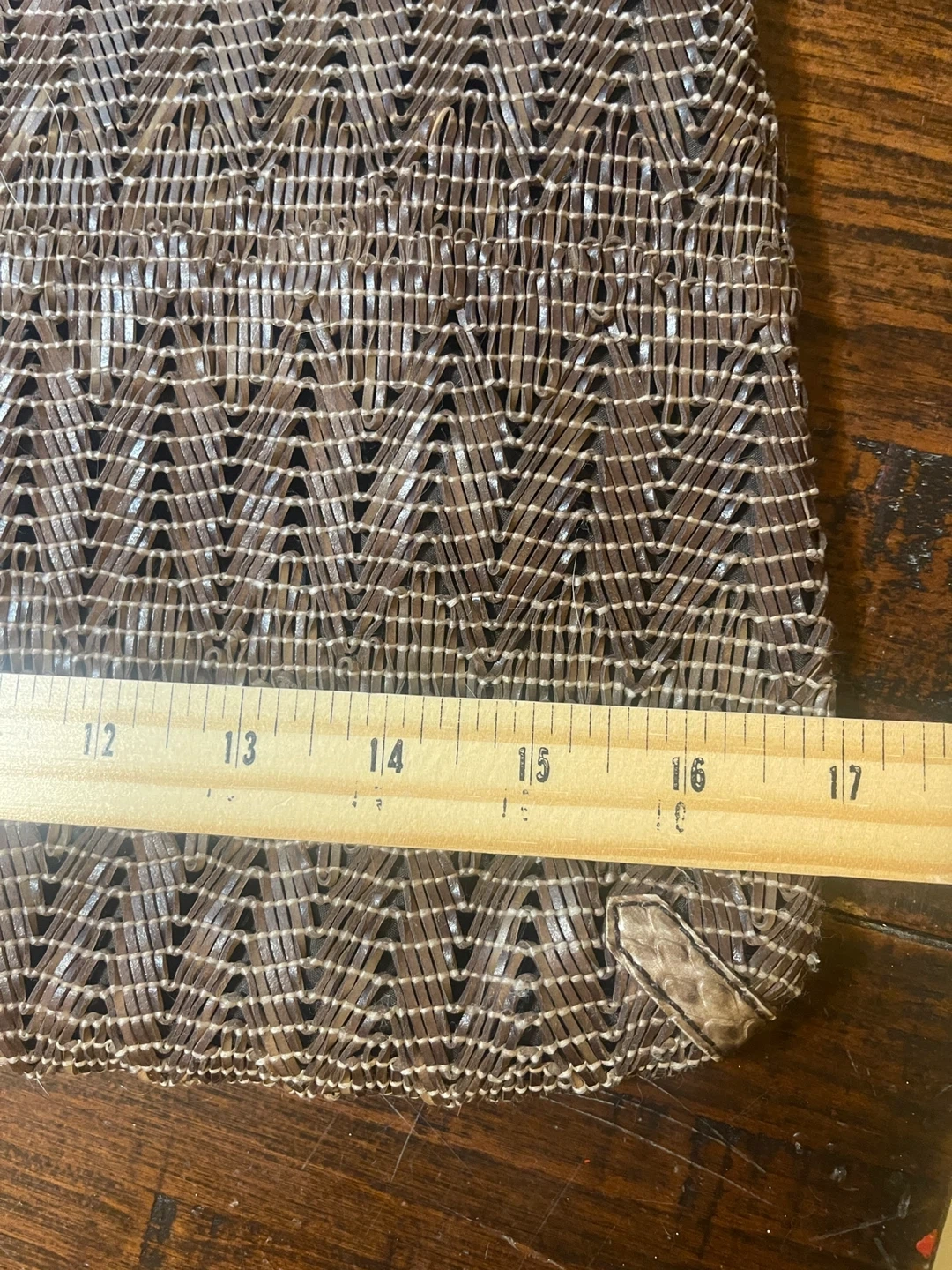 A rare and beautifully crafted woven faux leather shoulder bag, made in Canada and designed with incredible texture and detail. The body features hundreds of interlaced faux leather strips in a geometric pattern, creating a soft, flexible, and visually striking material.
