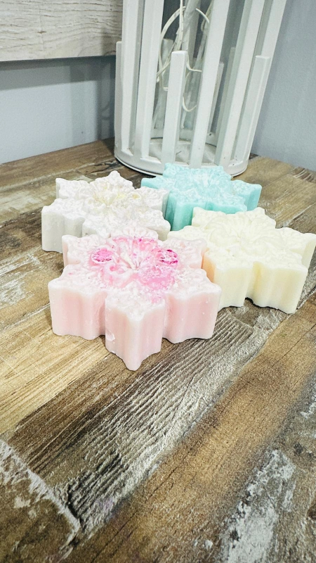 Selling a 4 snowflake shaped candles in various colours. They have a beautiful design and would be perfect for decoration or use! And a additional free rainbow candle for FREE!
