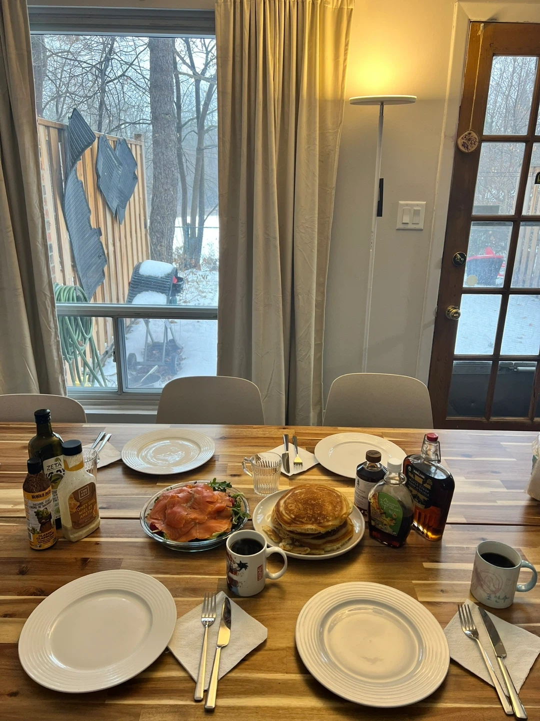 Beautiful solid wood dining table, perfect for family meals or entertaining guests.