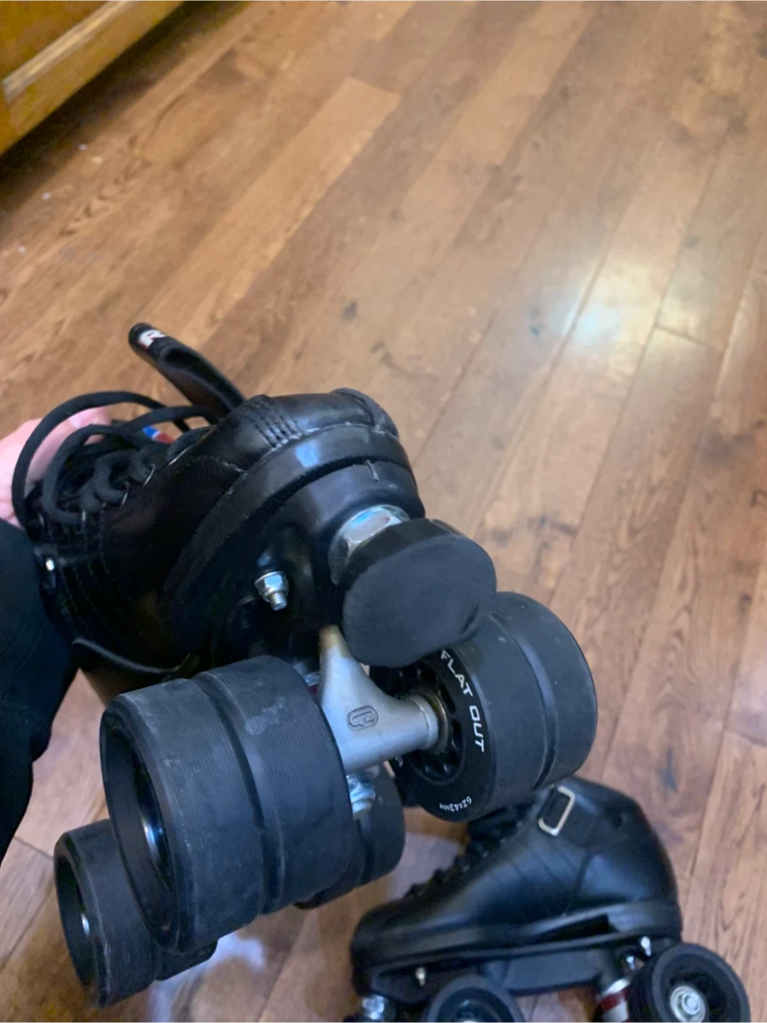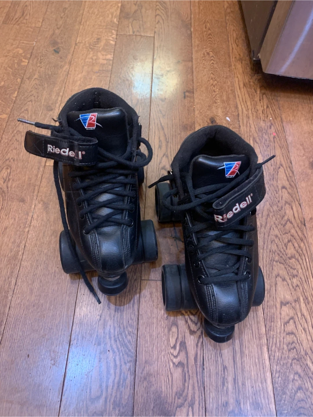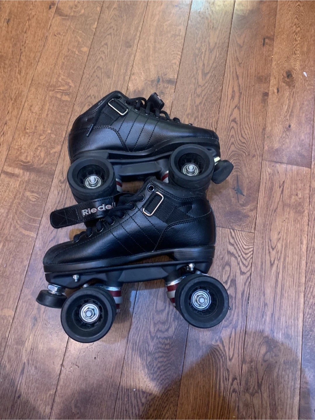 Selling a pair of Riedell R3/Cayman roller skates in black, size 4. These skates are in good used condition and ready for some fun at the rink or on the street. The R3/Cayman model is known for its comfort and performance, making it a great choice for beginners and experienced skaters alike!