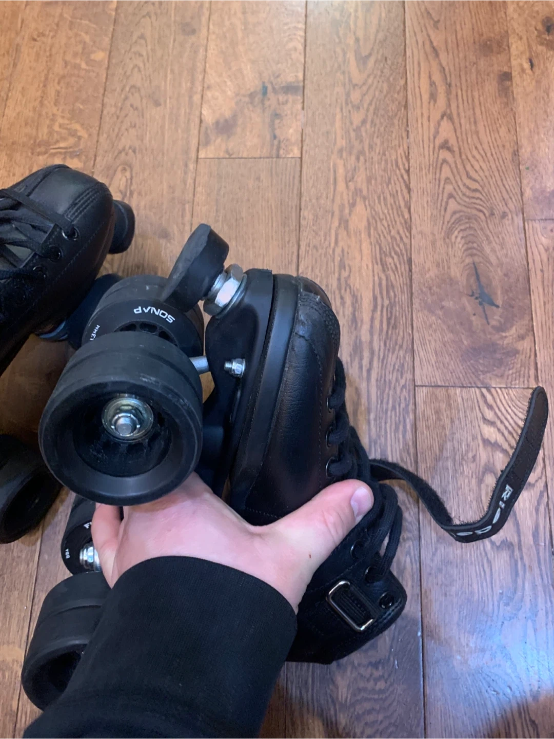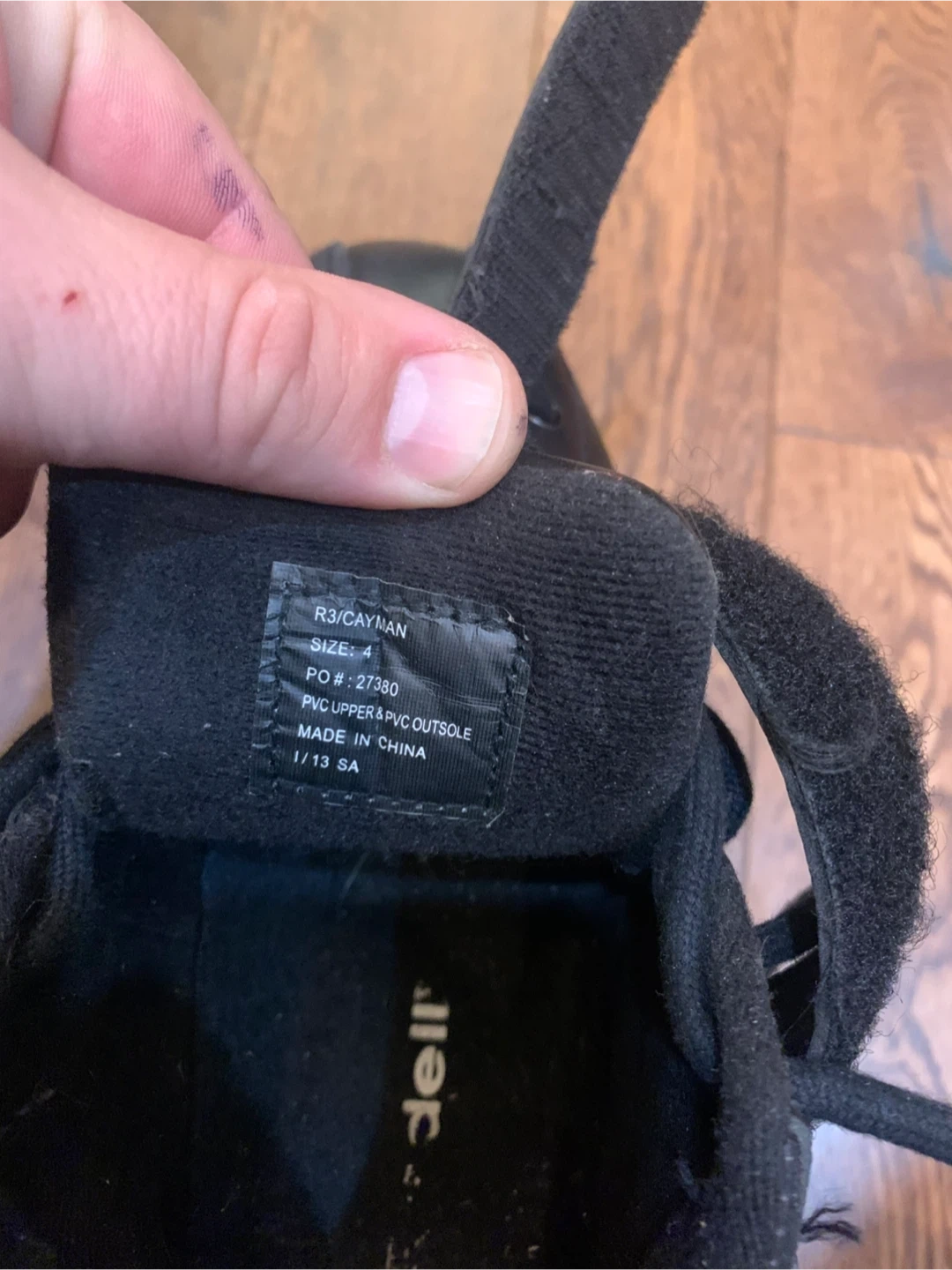 Selling a pair of Riedell R3/Cayman roller skates in black, size 4. These skates are in good used condition and ready for some fun at the rink or on the street. The R3/Cayman model is known for its comfort and performance, making it a great choice for beginners and experienced skaters alike!