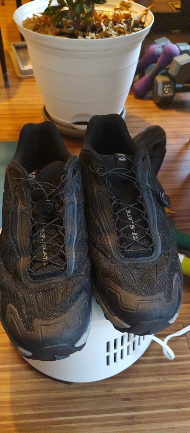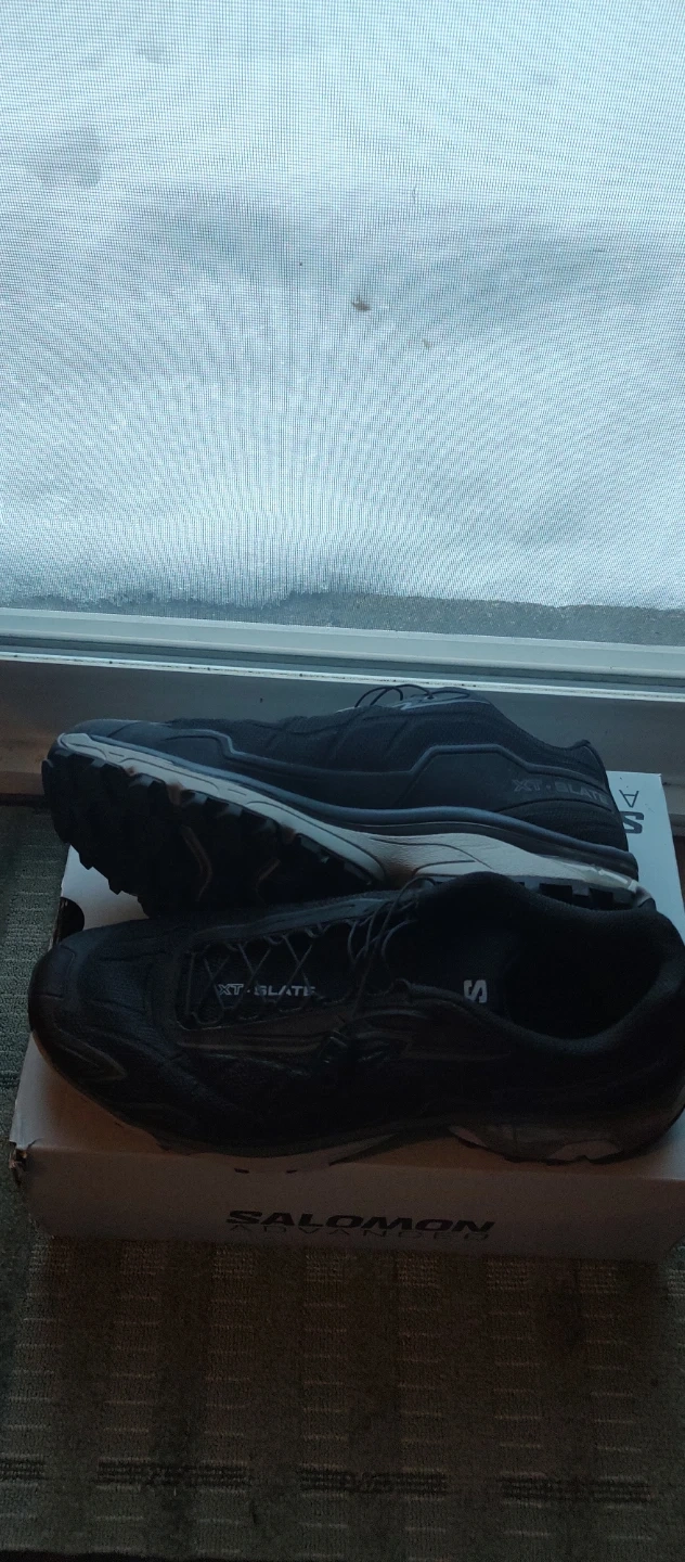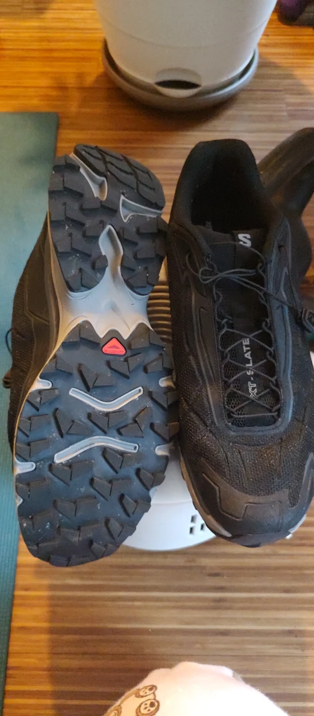Salomon XT-SLATE trail running shoes in black. These shoes are designed for performance on varied terrain. They feature a durable outsole for excellent grip.