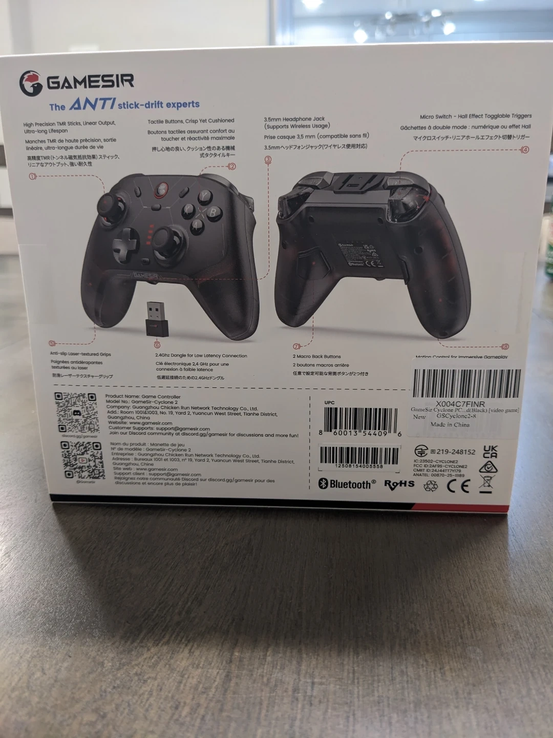 This GameSir Cyclone 2 is a multi-platform wireless game controller. It features tactile buttons, adjustable grips and 2.4GHz wireless connectivity. Charging dock included. It's compatible with PC, Switch, iOS and Android. Brand new in box.