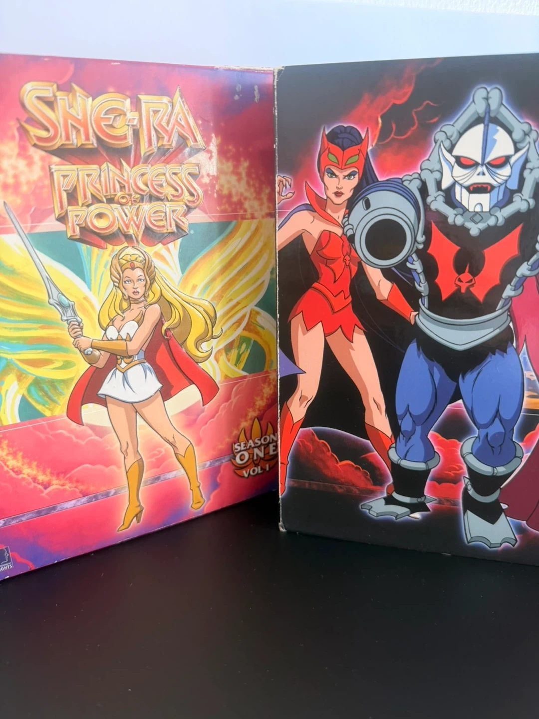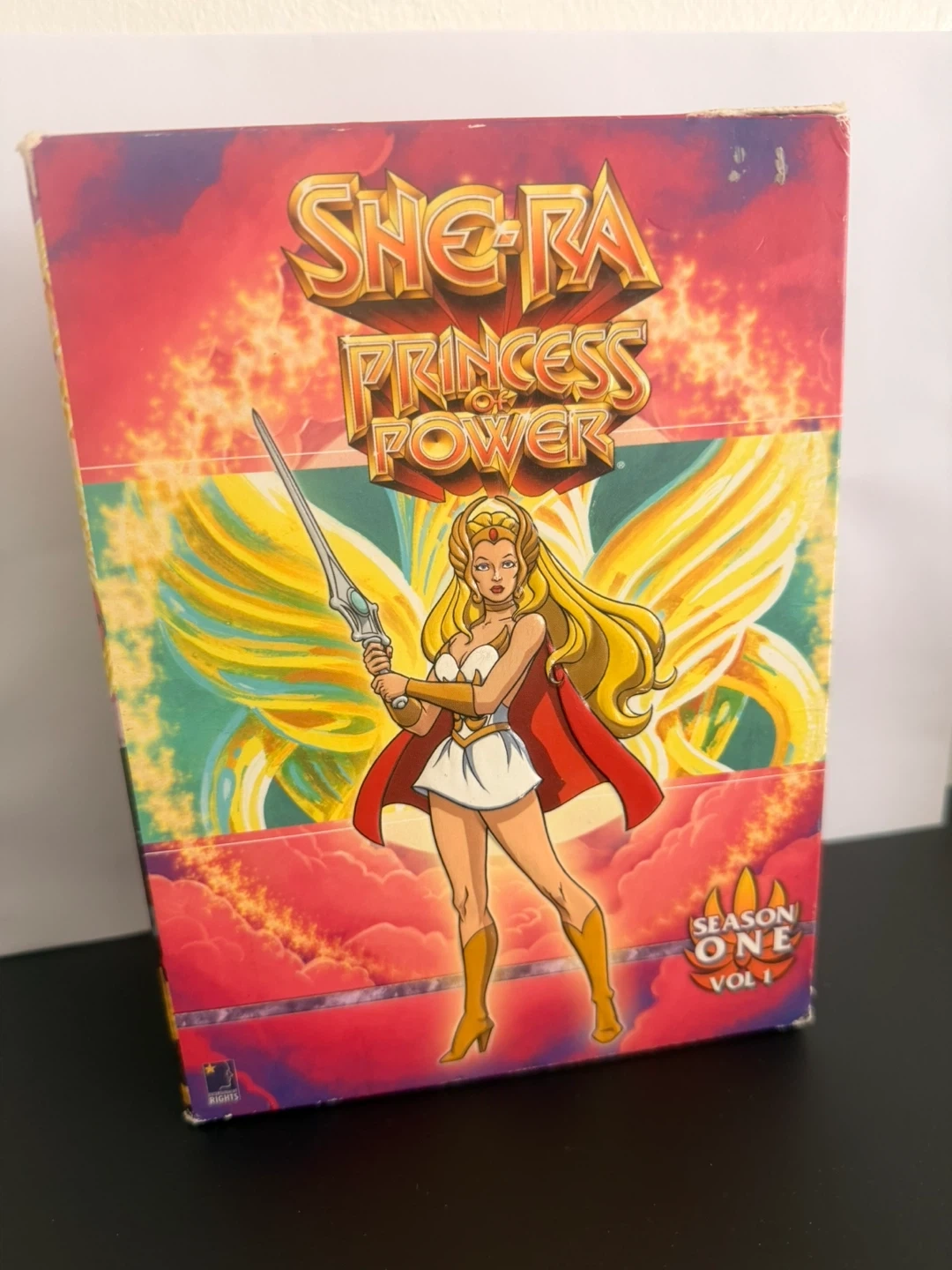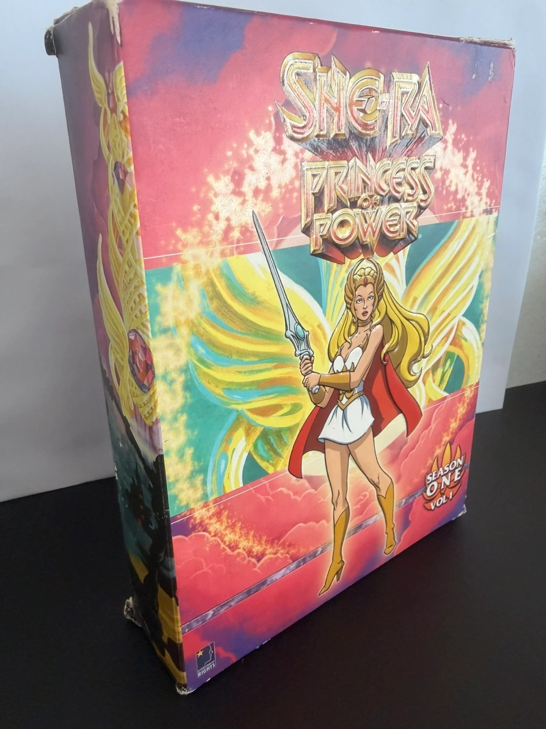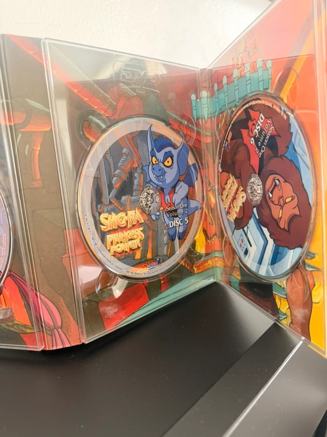 This DVD set includes She-Ra Princess of Power Season One Vol 1. It's a complete season collection of the classic animated series. Features multiple discs with bonus content.