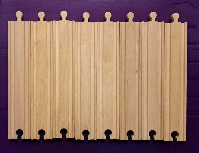 Like brand new 8 Straight Wooden Train Tracks. Each piece is 8.5" (21.5cm) long. Compatible with Thomas The Train and Friends. Used - Like new. For Sale By: Owner. Pickup: Yes.