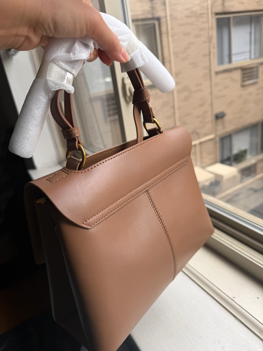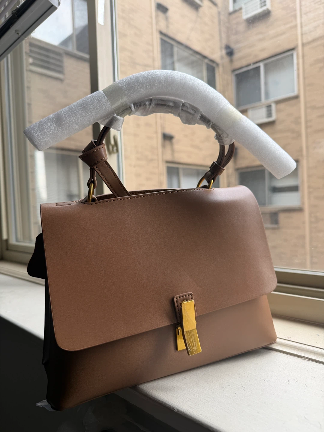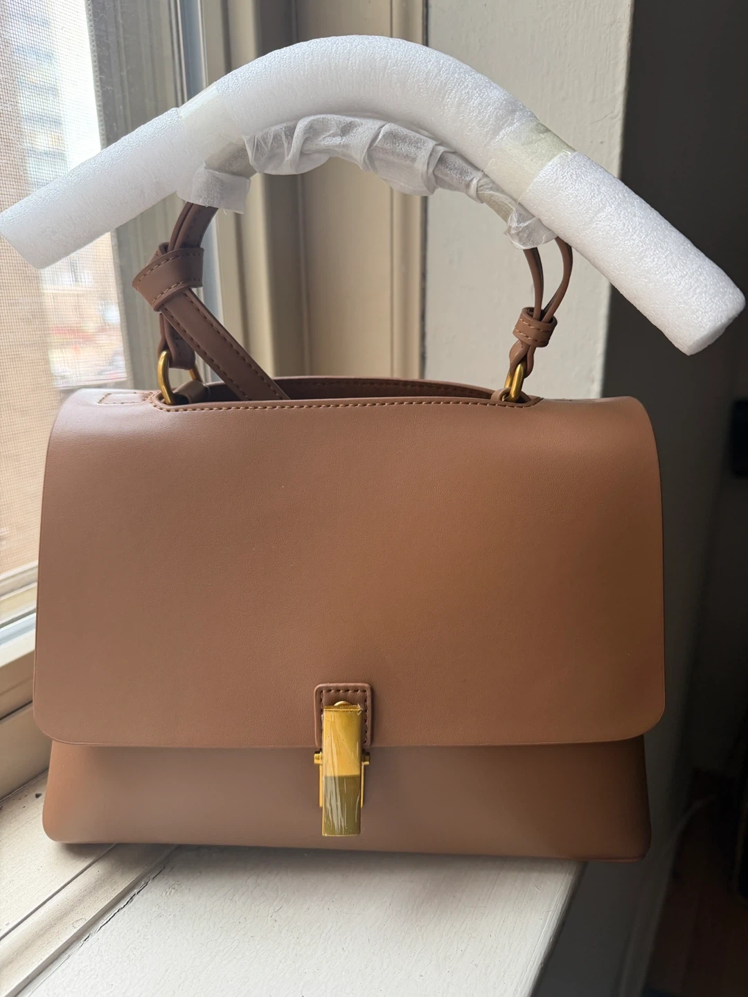 Selling a brand new brown leather handbag. It's in perfect condition, never been used! The bag has a classic and stylish design, perfect for any occasion. It's a great addition to any wardrobe!