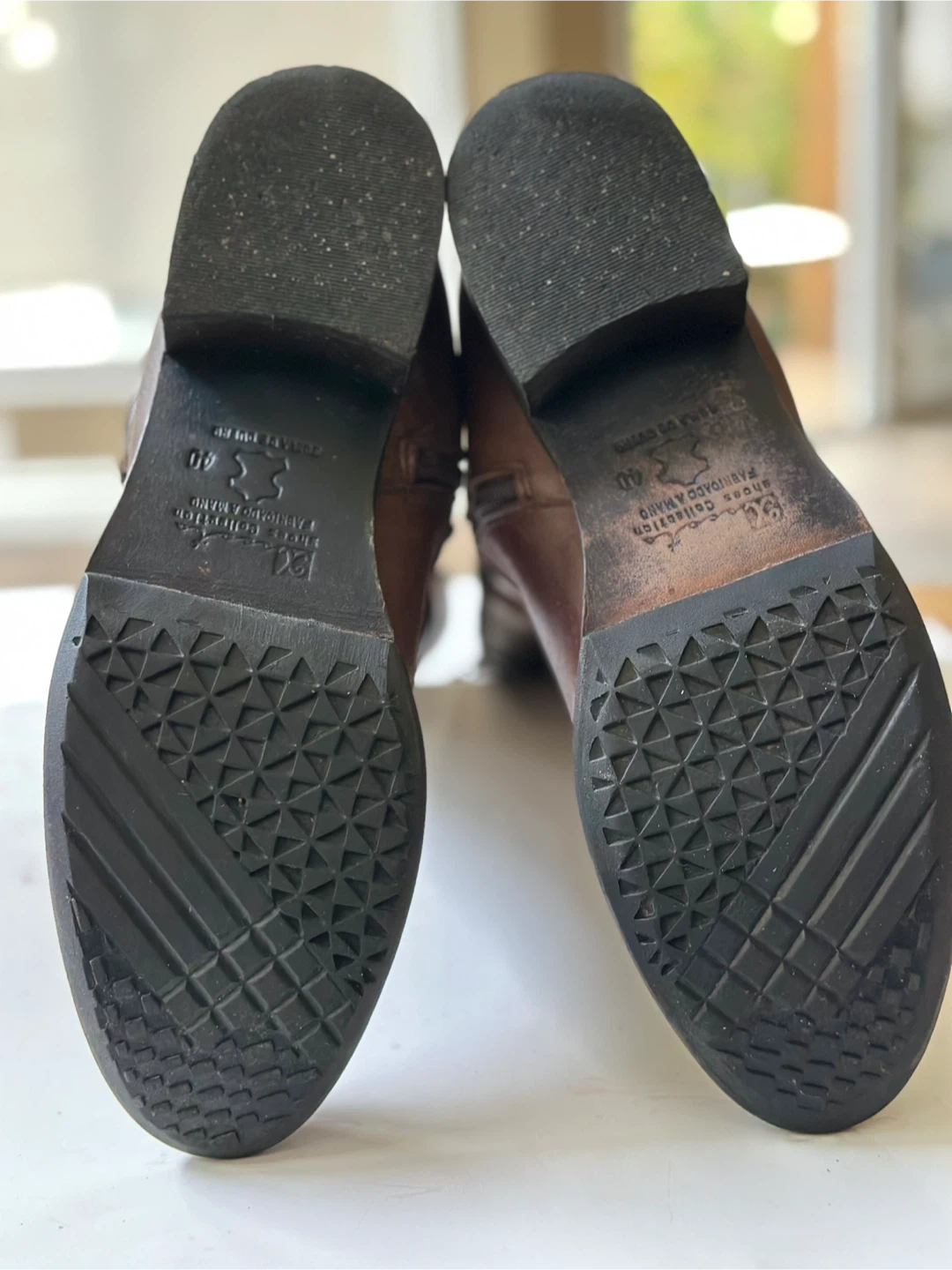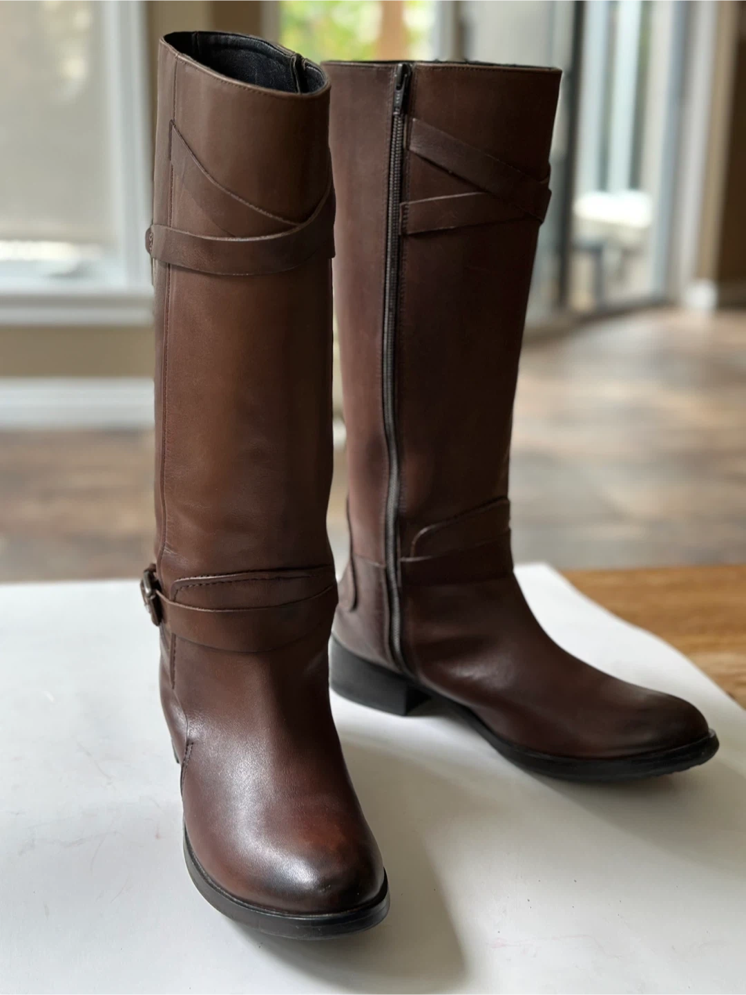 XACATA riding boots. In excellent preloved condition - newly resoled. Size : EUR 40/ US 9-9.5 High quality leather riding boots hand-made in Spain. Beautiful walnut brown tones …. Similar to Frye Melissa boots. These boots have been meticulously cleaned and sanitized. From a smoke free, pet free home. Pick up in Alta Vista.
