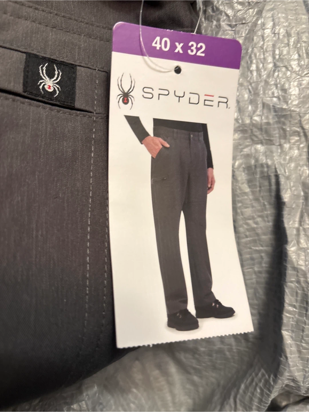 Spyder men's pants in a dark grey colour. Size 40 waist by 32 inseam. These pants feature a zippered pocket on the right leg. They're made with a durable fabric perfect for outdoor activities.