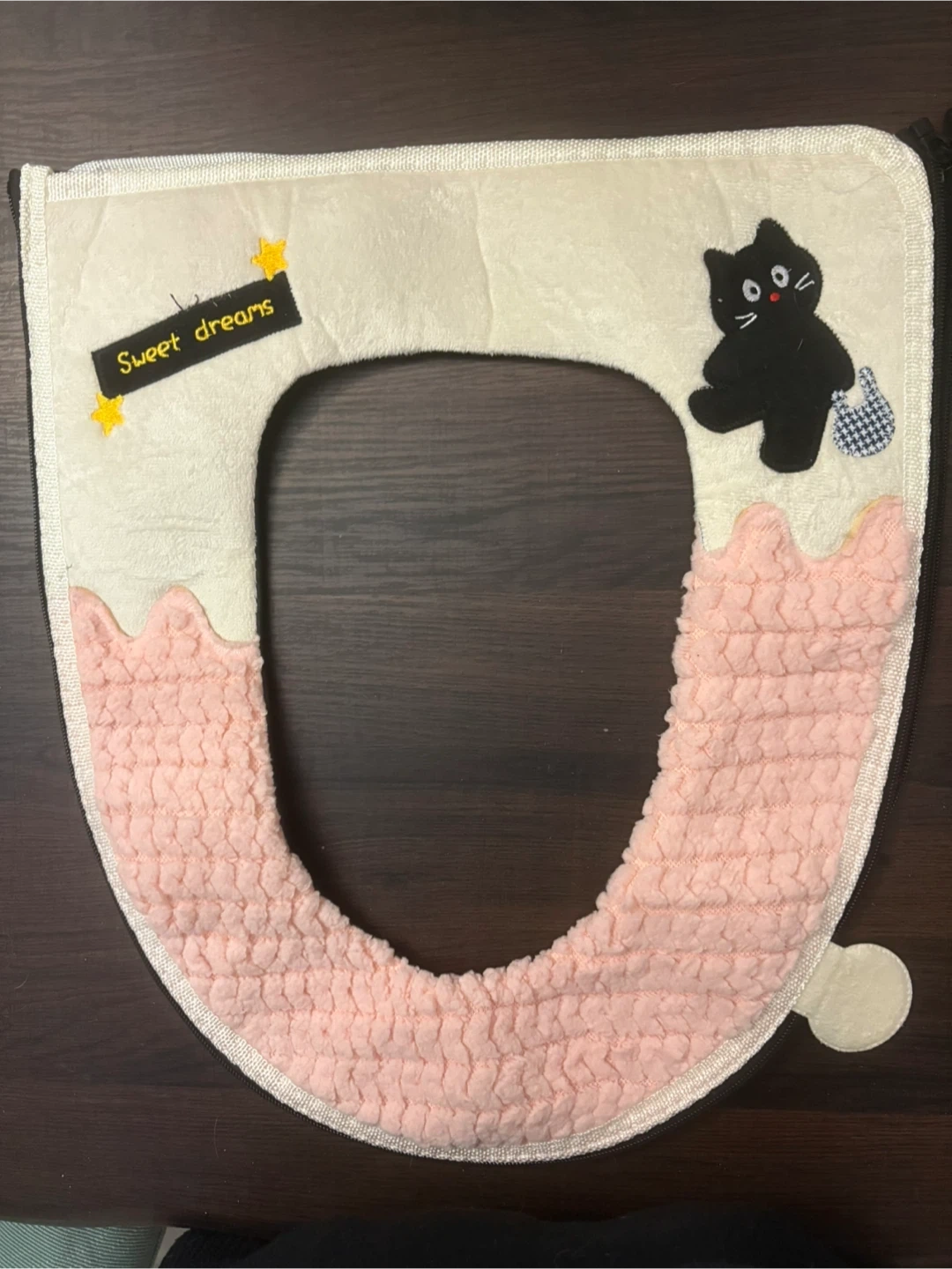 Joli coussin de siège de toilette avec un chat noir brodé et l'inscription « Sweet dreams »! Il est neuf