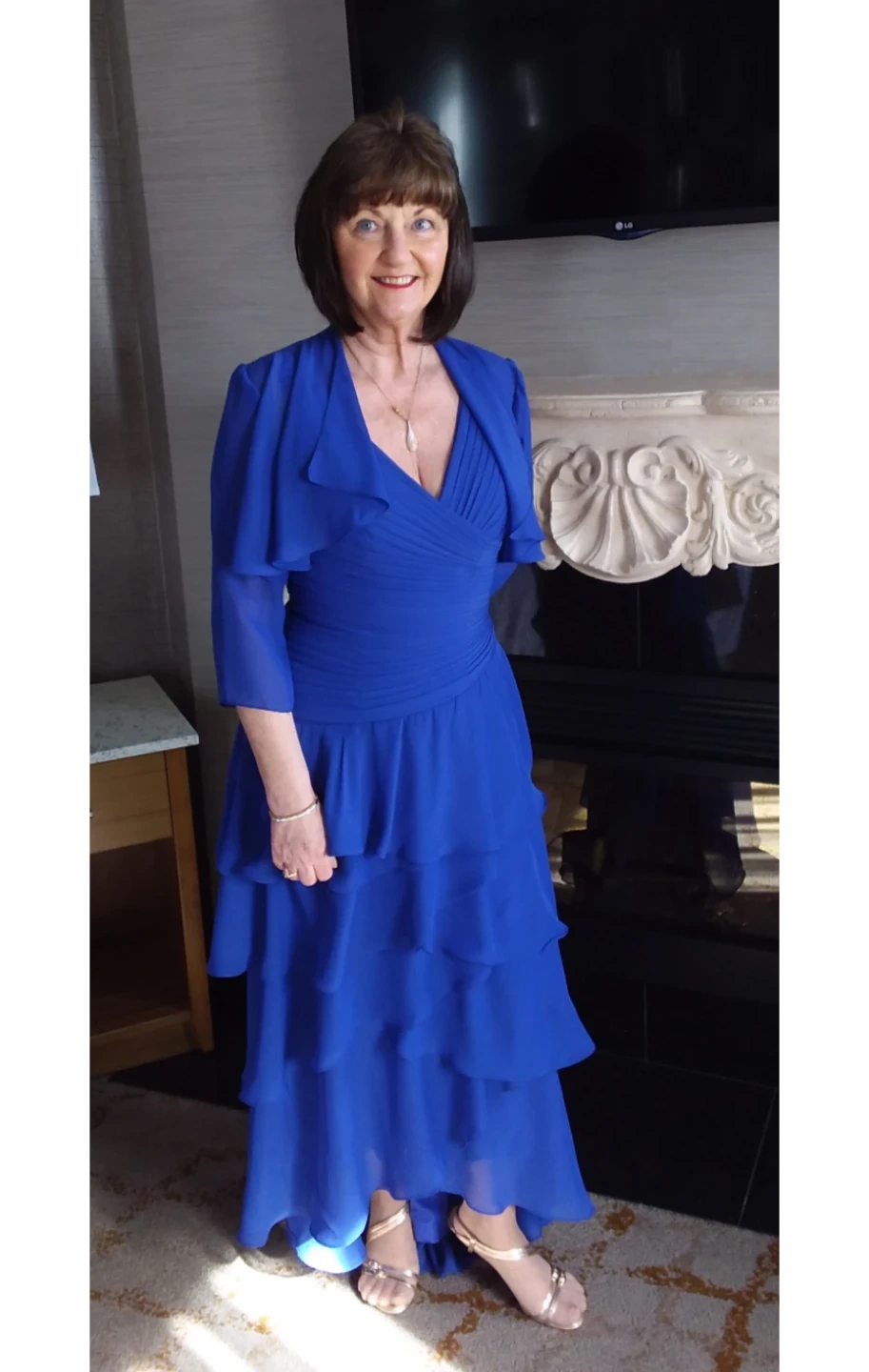 Blue Ruffled Chiffon Dress with Bolero mother of the bride.