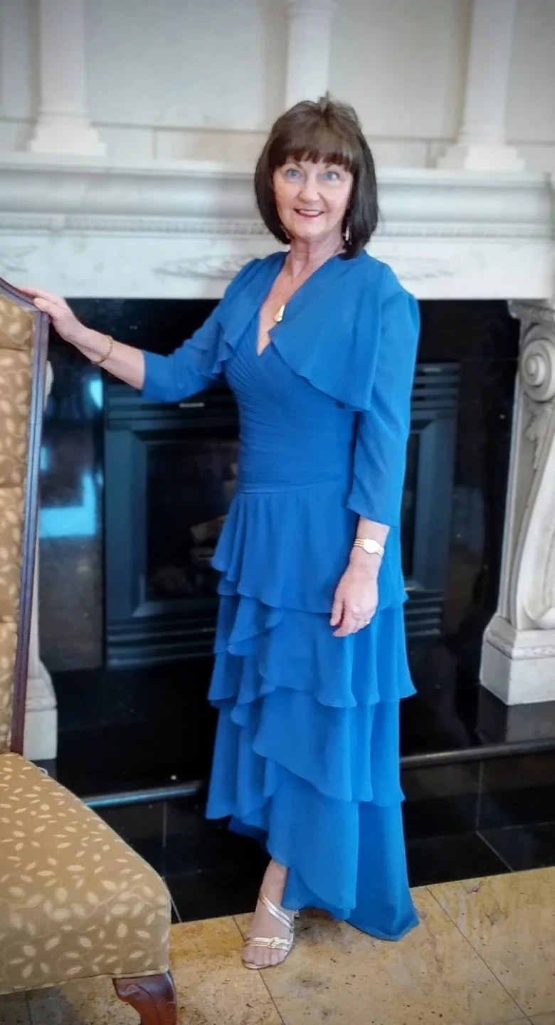 Blue Ruffled Chiffon Dress with Bolero mother of the bride.
