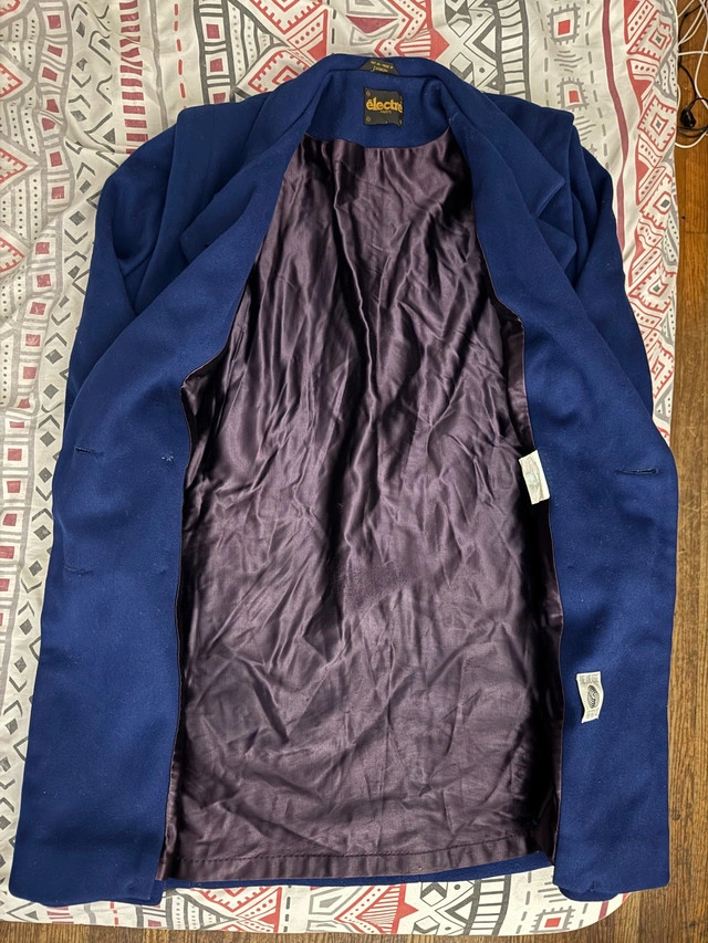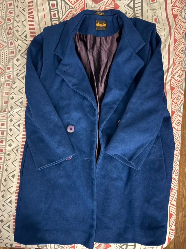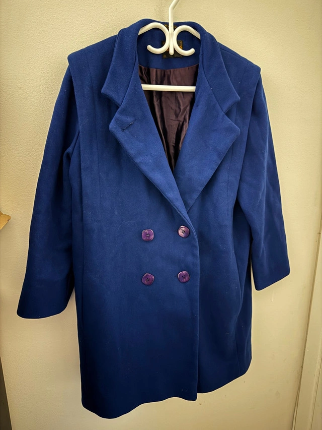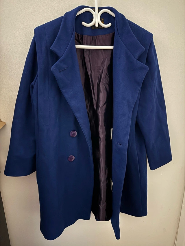 This elegant women's wool coat in royal blue is in excellent condition and ready to add a touch of class to your wardrobe. The double-breasted design and rich colour make it a standout piece. Key Features: * Colour: Royal Blue * Material: Wool blend * Style: Double-breasted * Condition: Excellent Looking to add a dash of sophistication? This coat is perfect! And just a friendly reminder: If you're seeing this ad, the coat is still available, so don't hesitate to reach out!