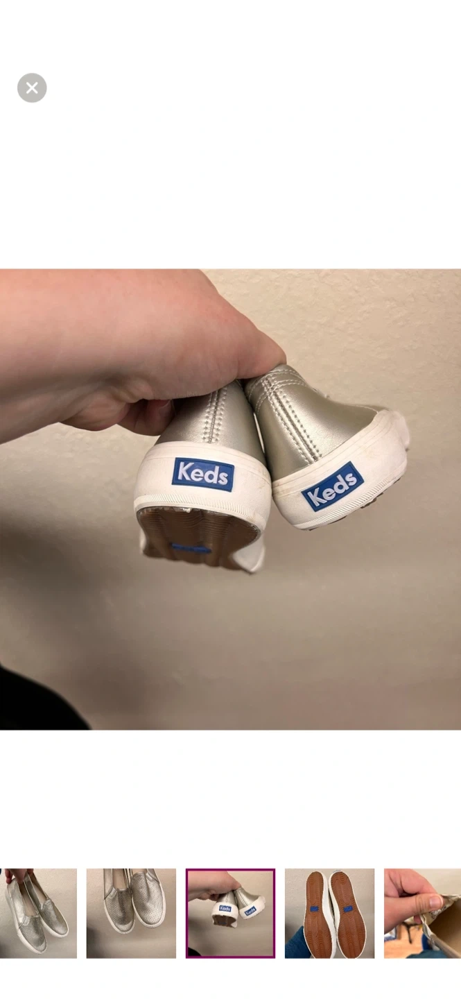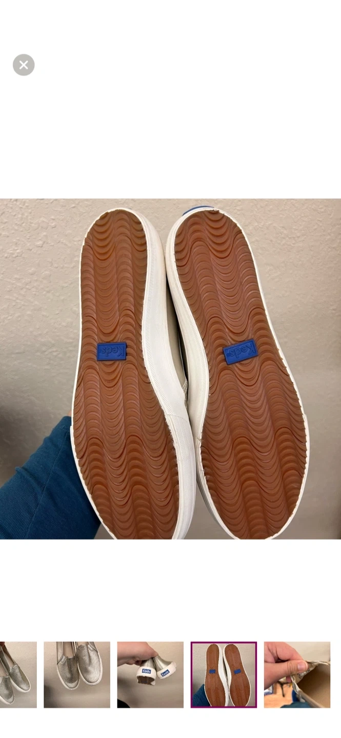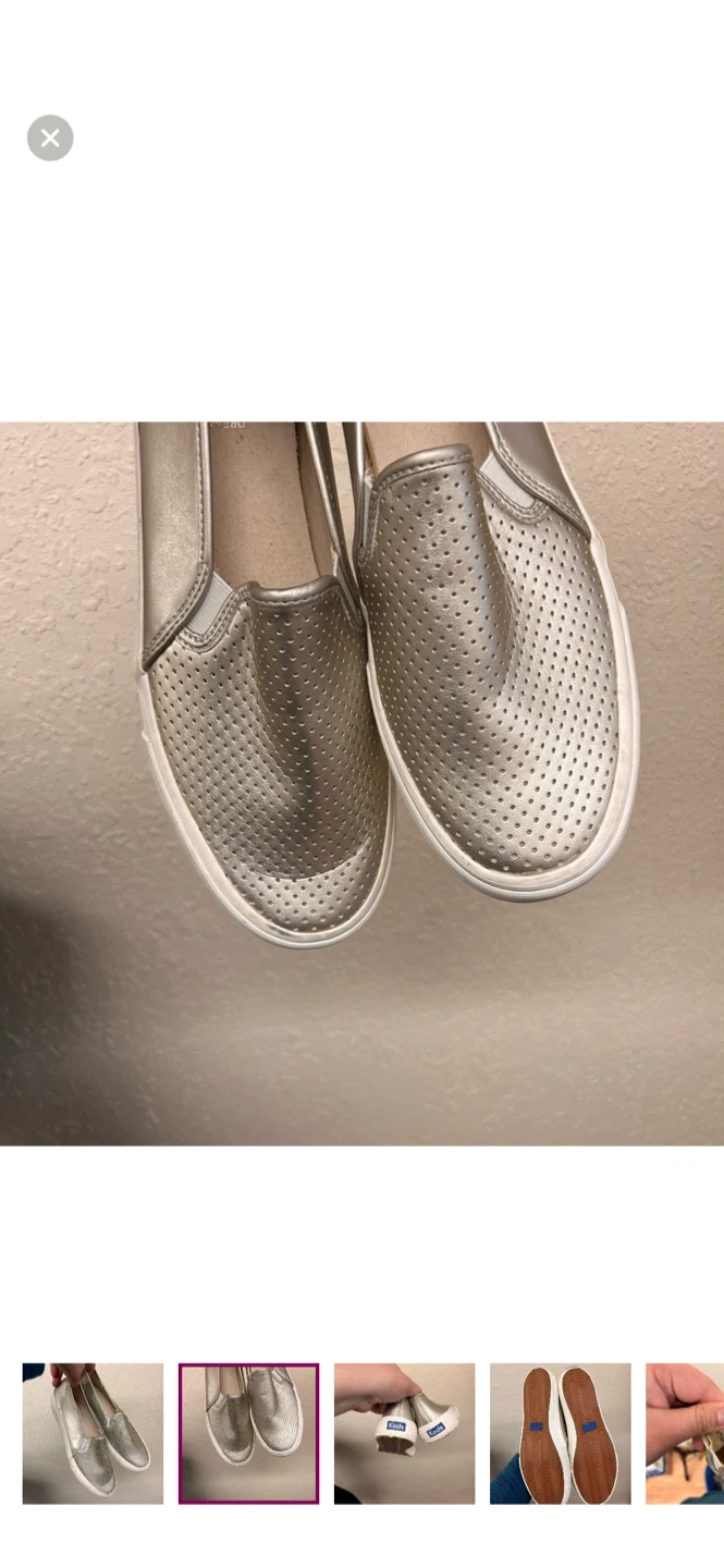 Keds brand. slip on sneakers. Metallic silver in colour. Size 9.5. Brand new condition