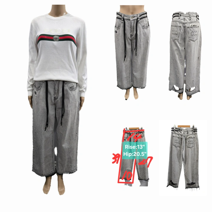 No visible flaws, but some wrinkles exist besides the intentional distressed and ripped parts.