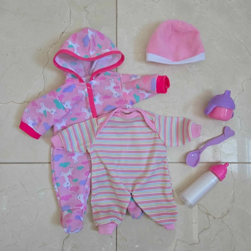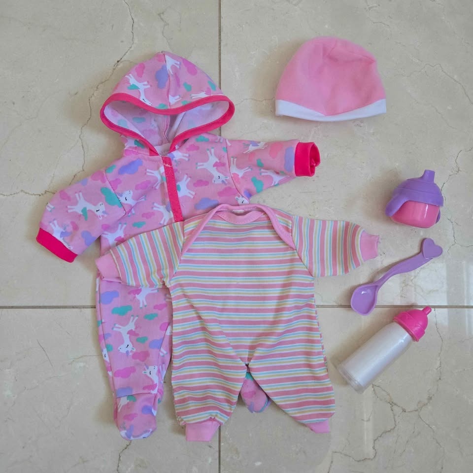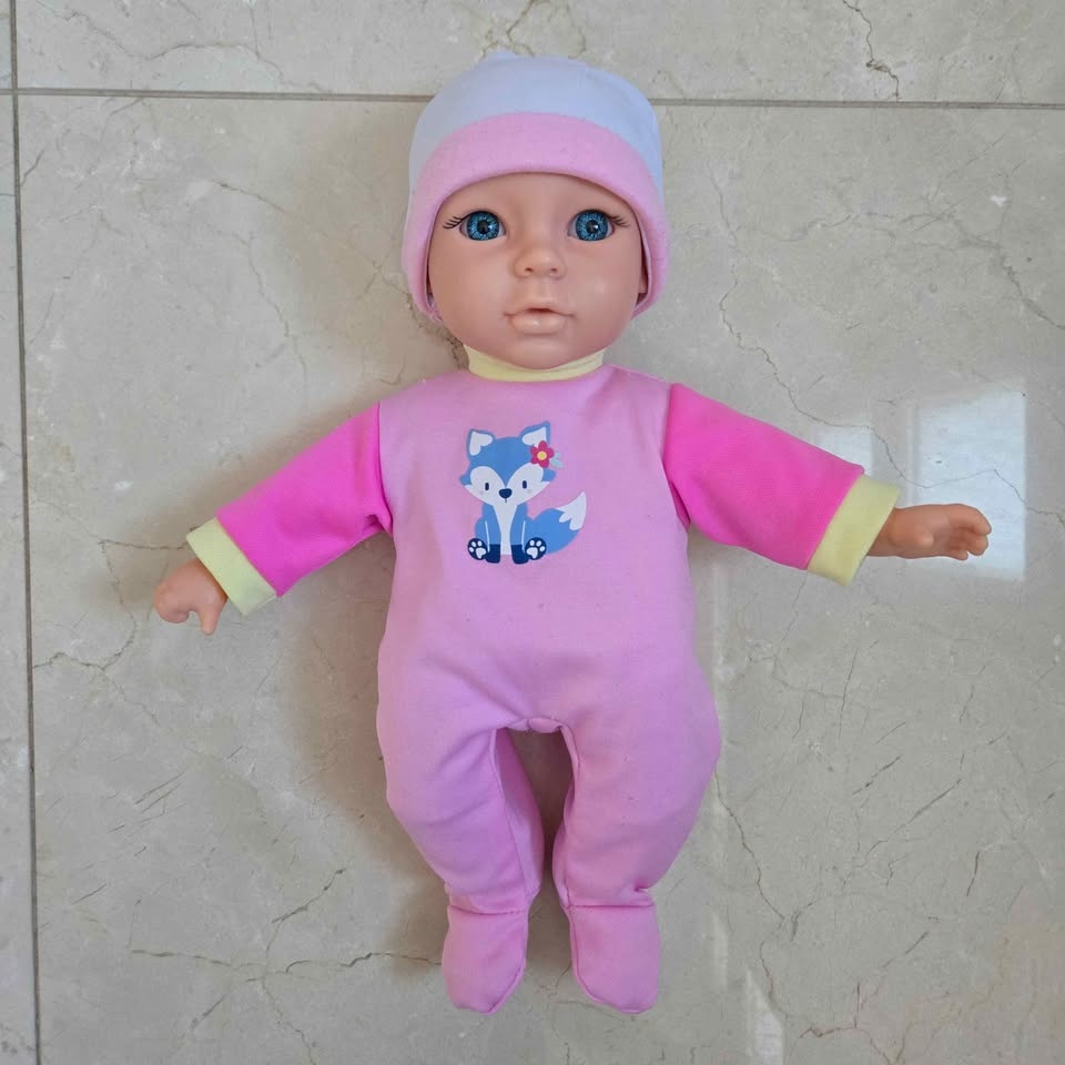 - New Adventures Little Darlings 12" Soft Snuggly Baby Doll in a Pink Fox Onesie with 2 Extra Outfits & Feeding Set