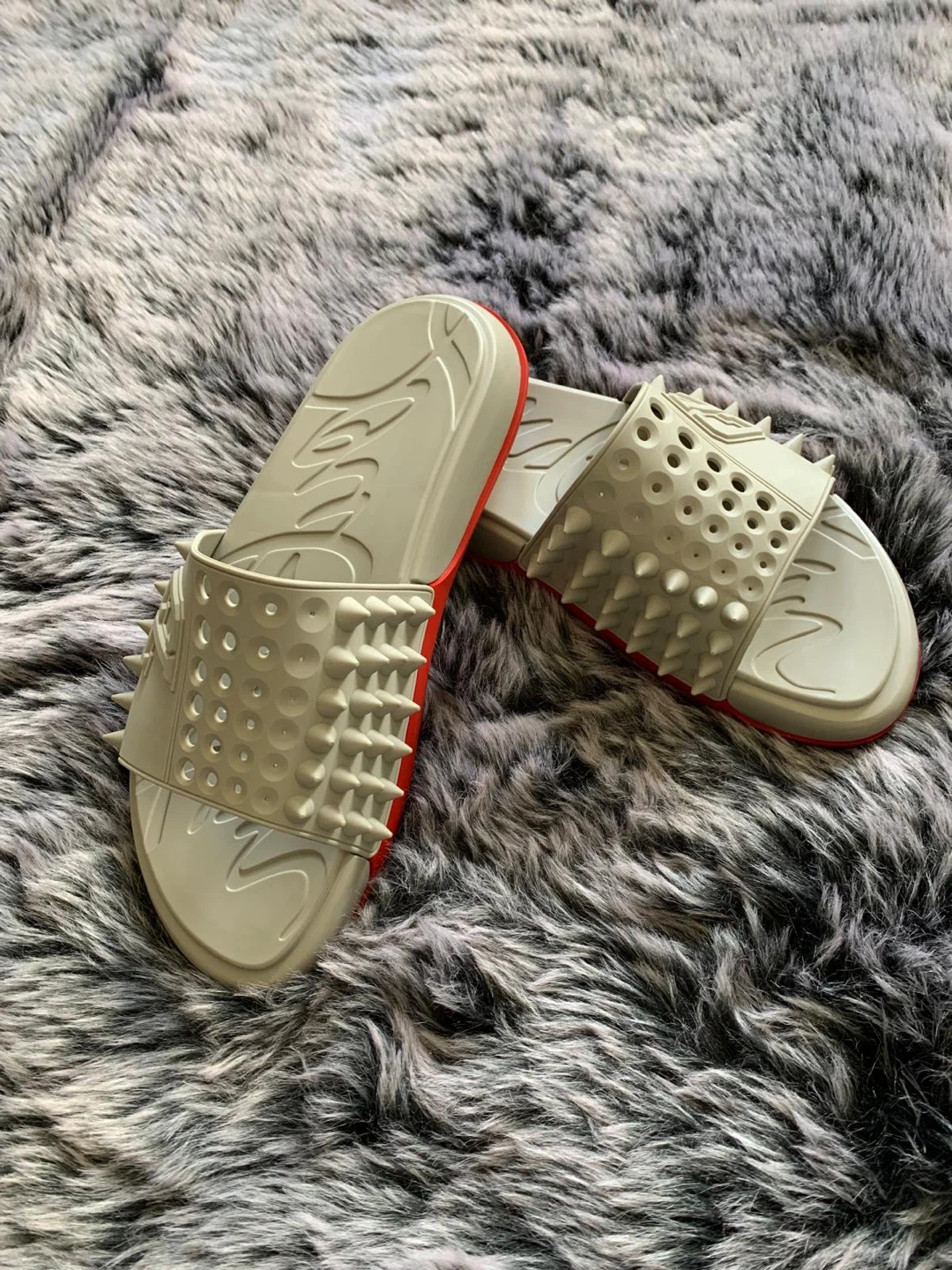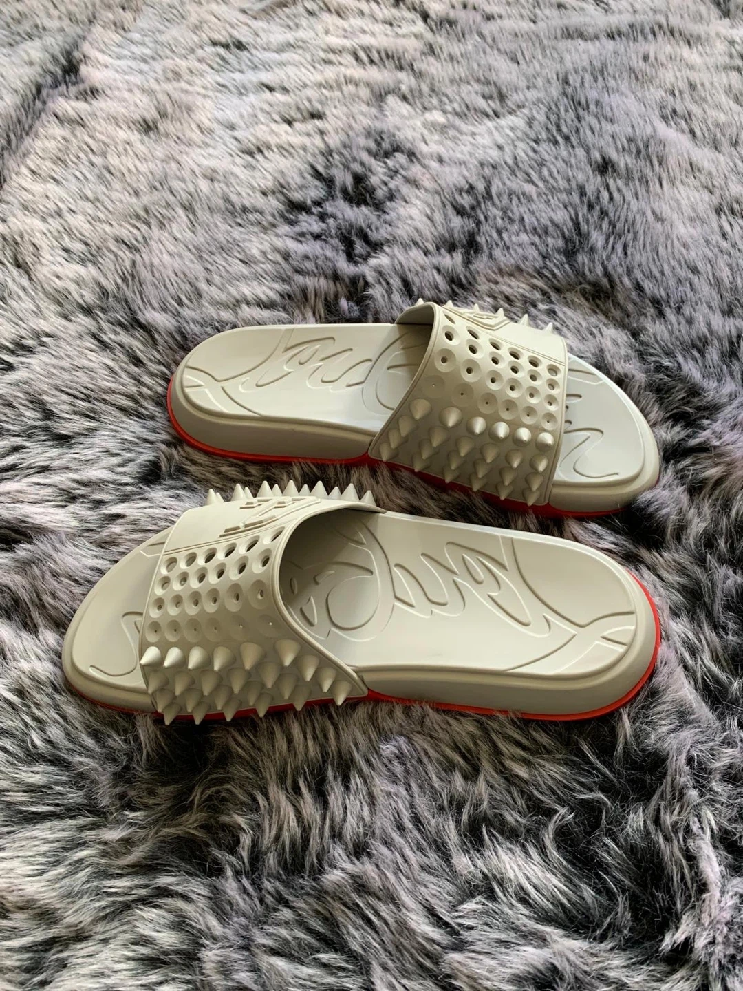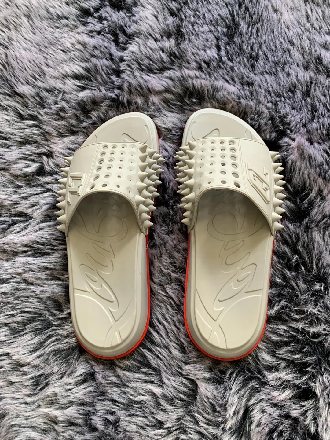 Selling a pair of authentic Christian Louboutin Loubi Pool flat slides. They feature a unique design with spike embellishments. Originally over $850 plus taxes. Box not included. Serious buyers only. Price is firm.