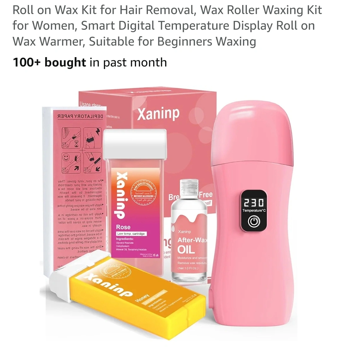 10I'm selling a 1 time used new Xaninp Wax Roller Kit! It includes the wax warmer, rose and honey wax cartridges, and after-wax oil. Perfect for beginners waxing at home!