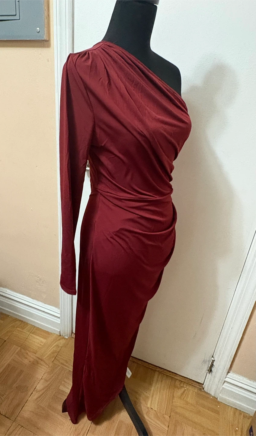 SHEIN One-Shoulder Ruched Maxi Dress Burgundy Size L