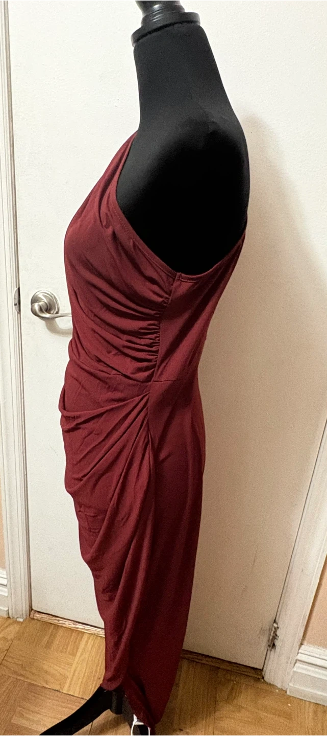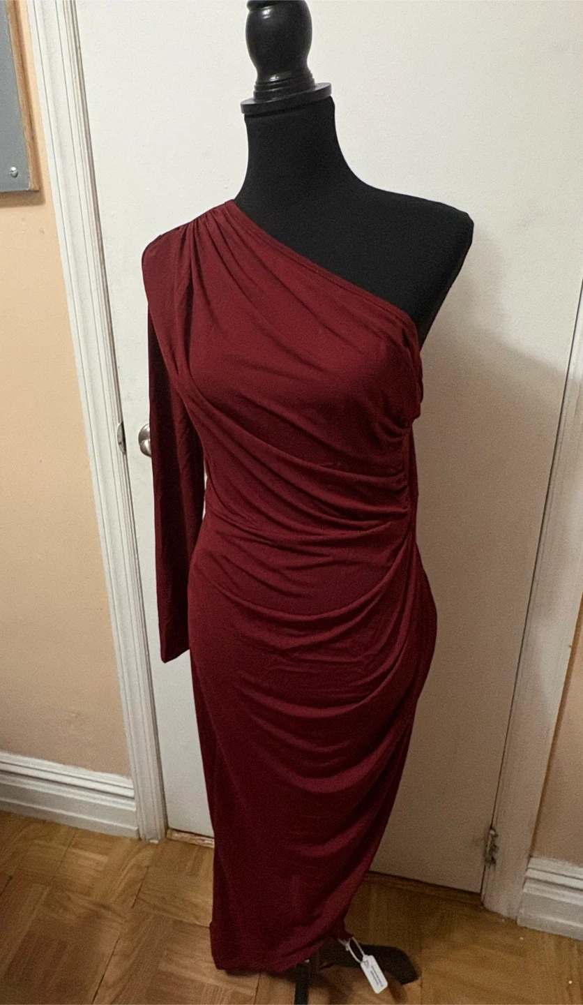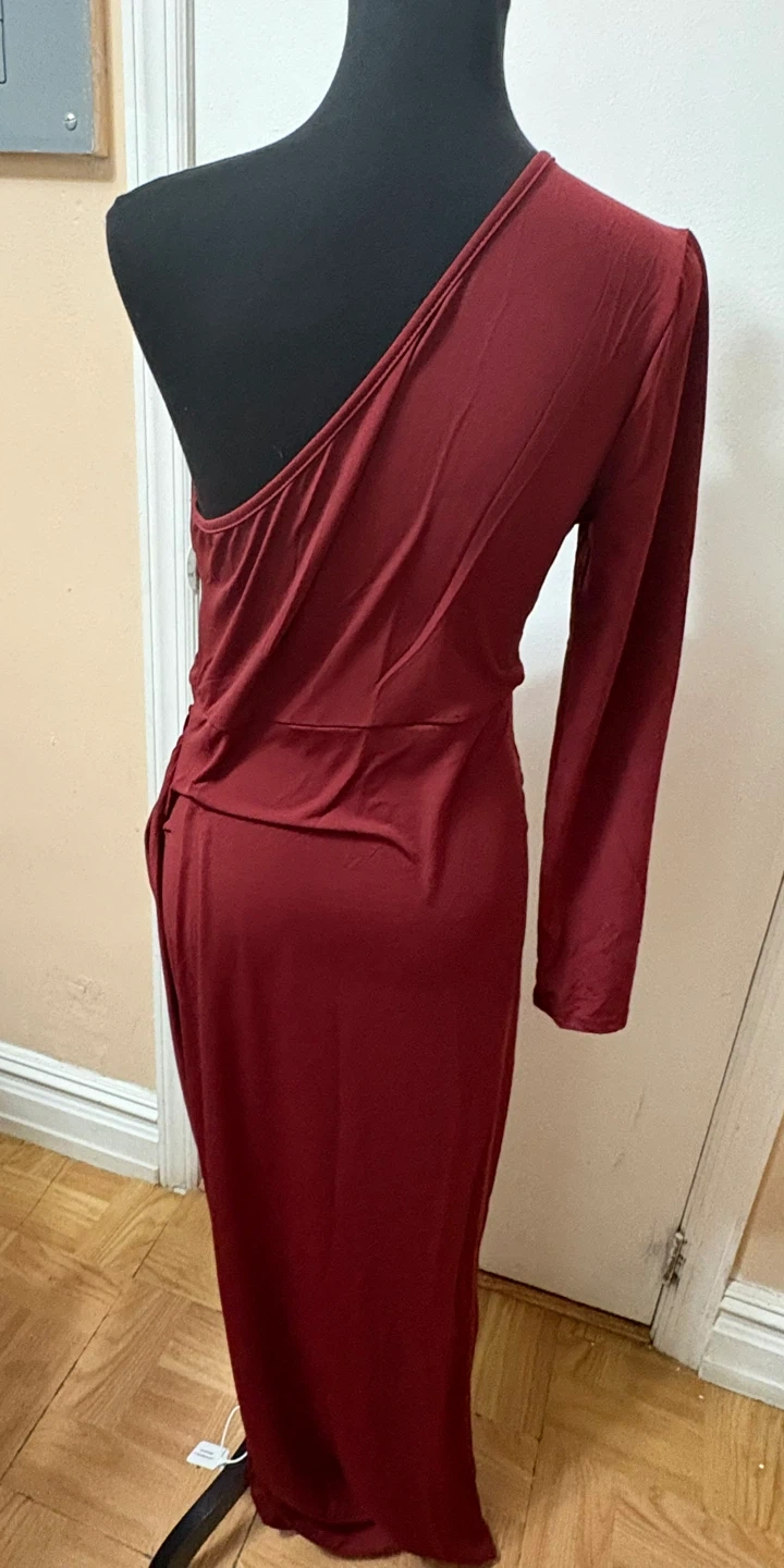 SHEIN One-Shoulder Ruched Maxi Dress Burgundy Size L