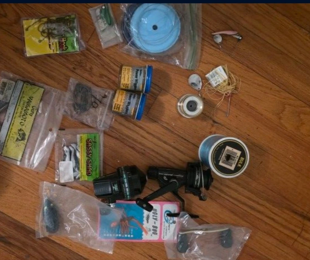 Vintage Lot includes several fishing lures and two fishing reels. Also includes containers of Power Wigglers and fishing line. Ready for your next fishing trip!