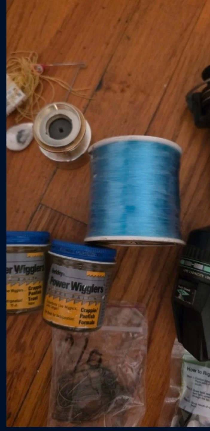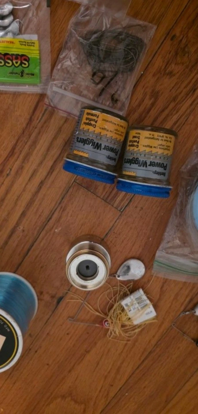 Vintage Lot includes several fishing lures and two fishing reels. Also includes containers of Power Wigglers and fishing line. Ready for your next fishing trip!