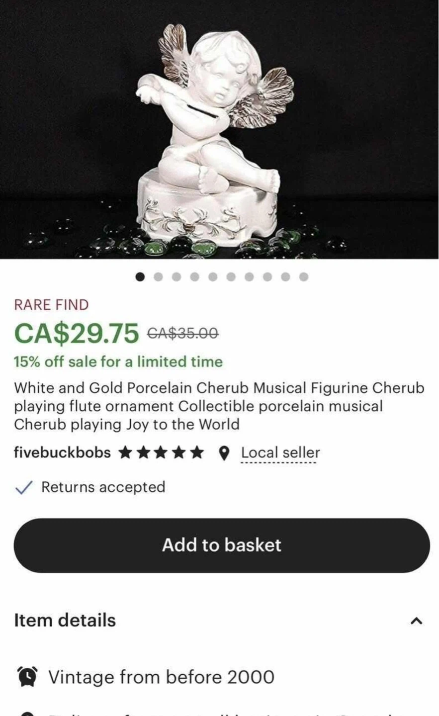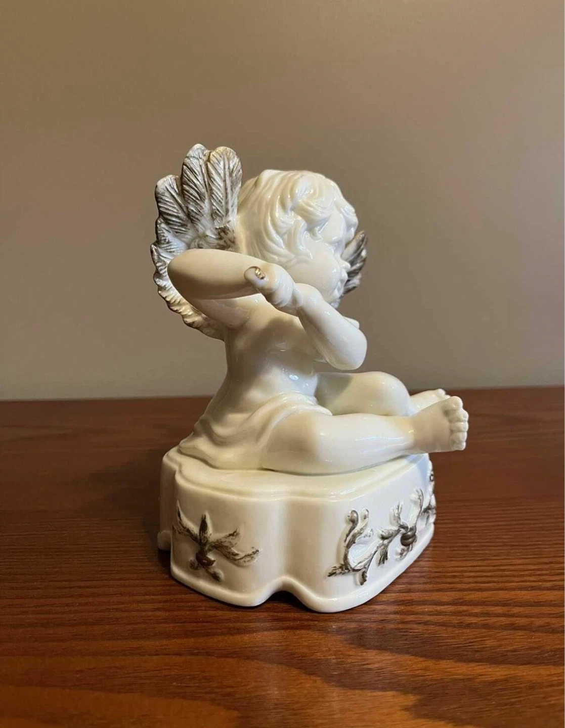 $25 Vintage porcelain Cherub playing flute musical figurine.