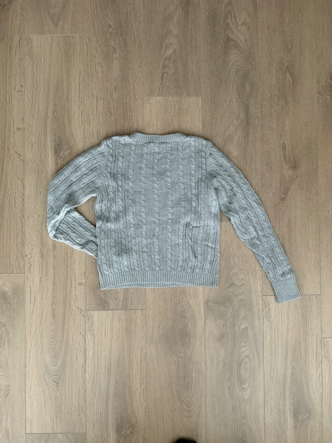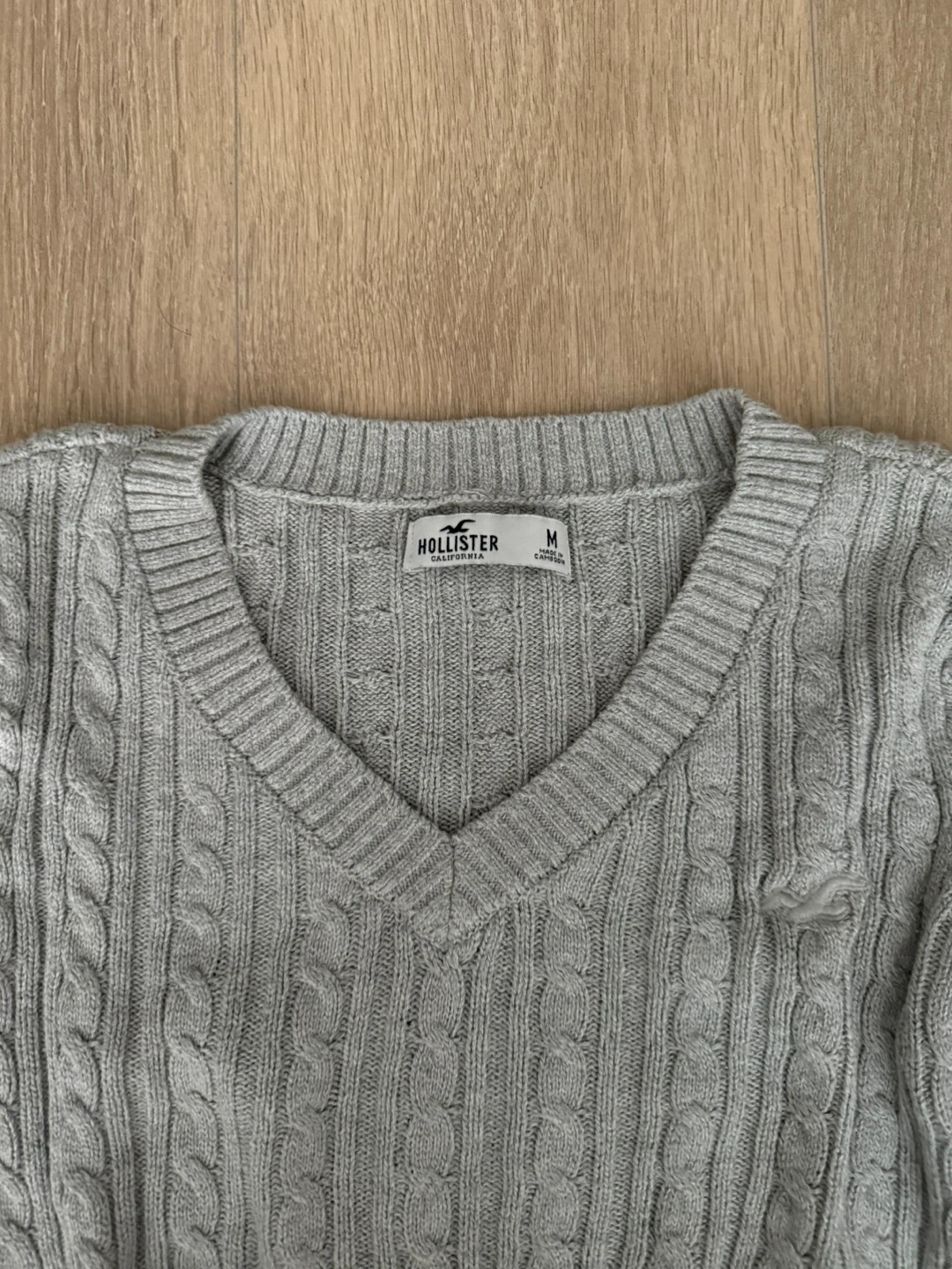 Cozy grey cable knit sweater from Hollister. It's a size medium with a classic V-neck design. Looks great layered or on its own for a casual vibe! Only worn a few times, Im selling since Im a student! I do discounts on bundles!!