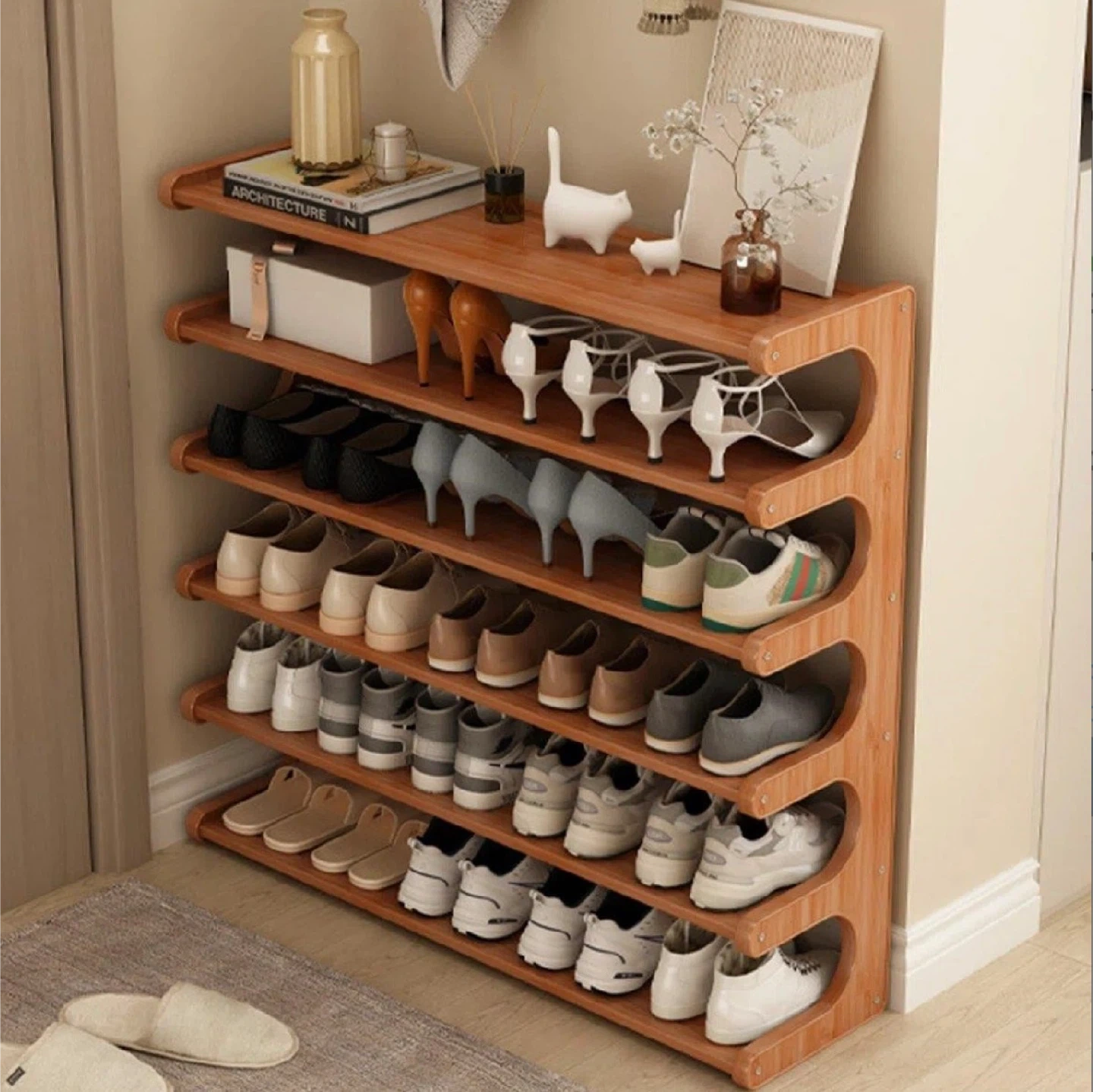 6-layer Space-saving Bamboo Shoe Rack
