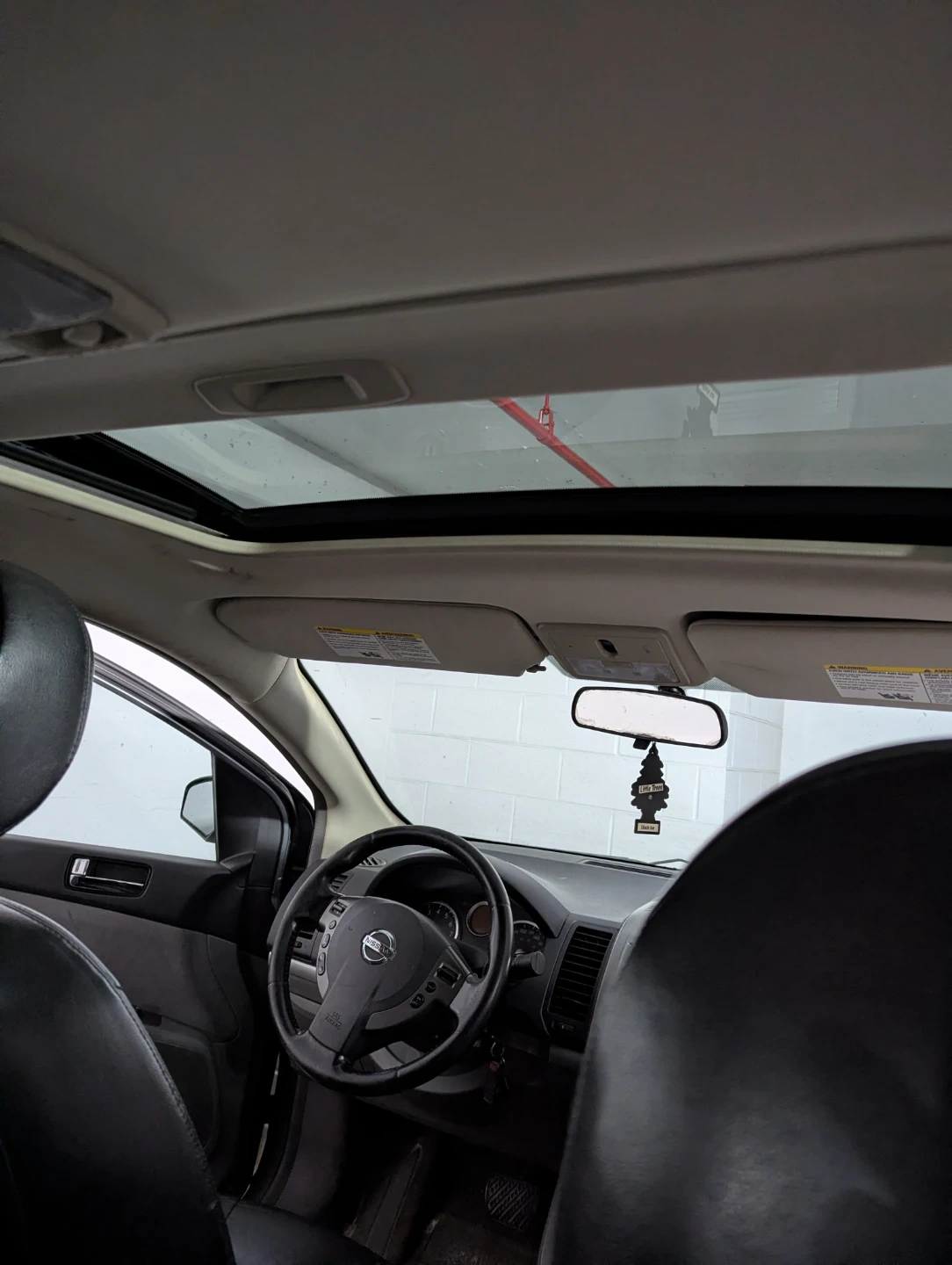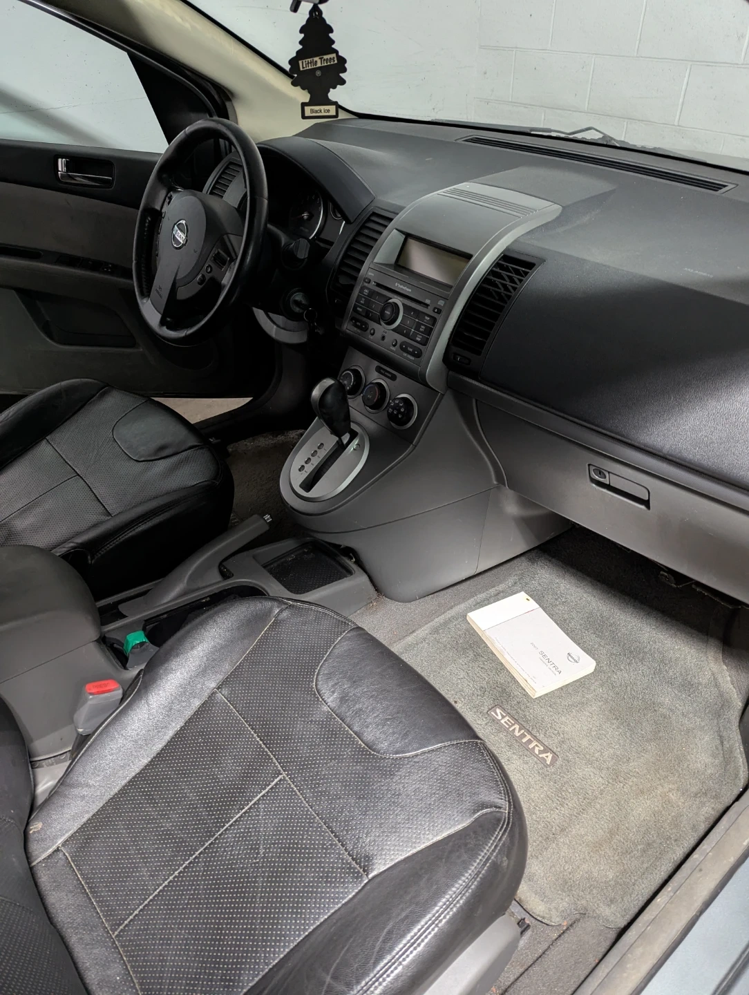 Grey Nissan Sentra 2.0L sedan with leather interior. Features a sunroof and comfortable seating. This car's compact size makes it easy to manoeuvre.New A/C and Heater system.