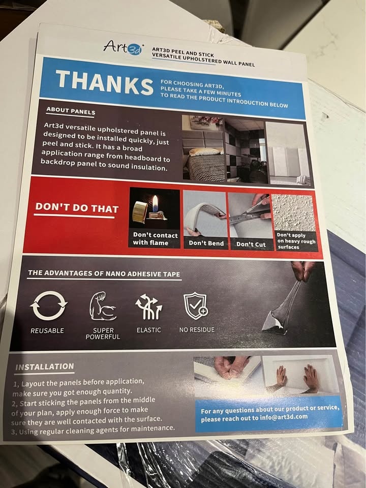 Brand New Reusable Art3d Peel and Stick Headboard for Full and Queen in Black, Pack of 9 Panels Sized 9.84"' x 23.62", 3D Soundproof Wall Panels, Upholstered Wall Panel.