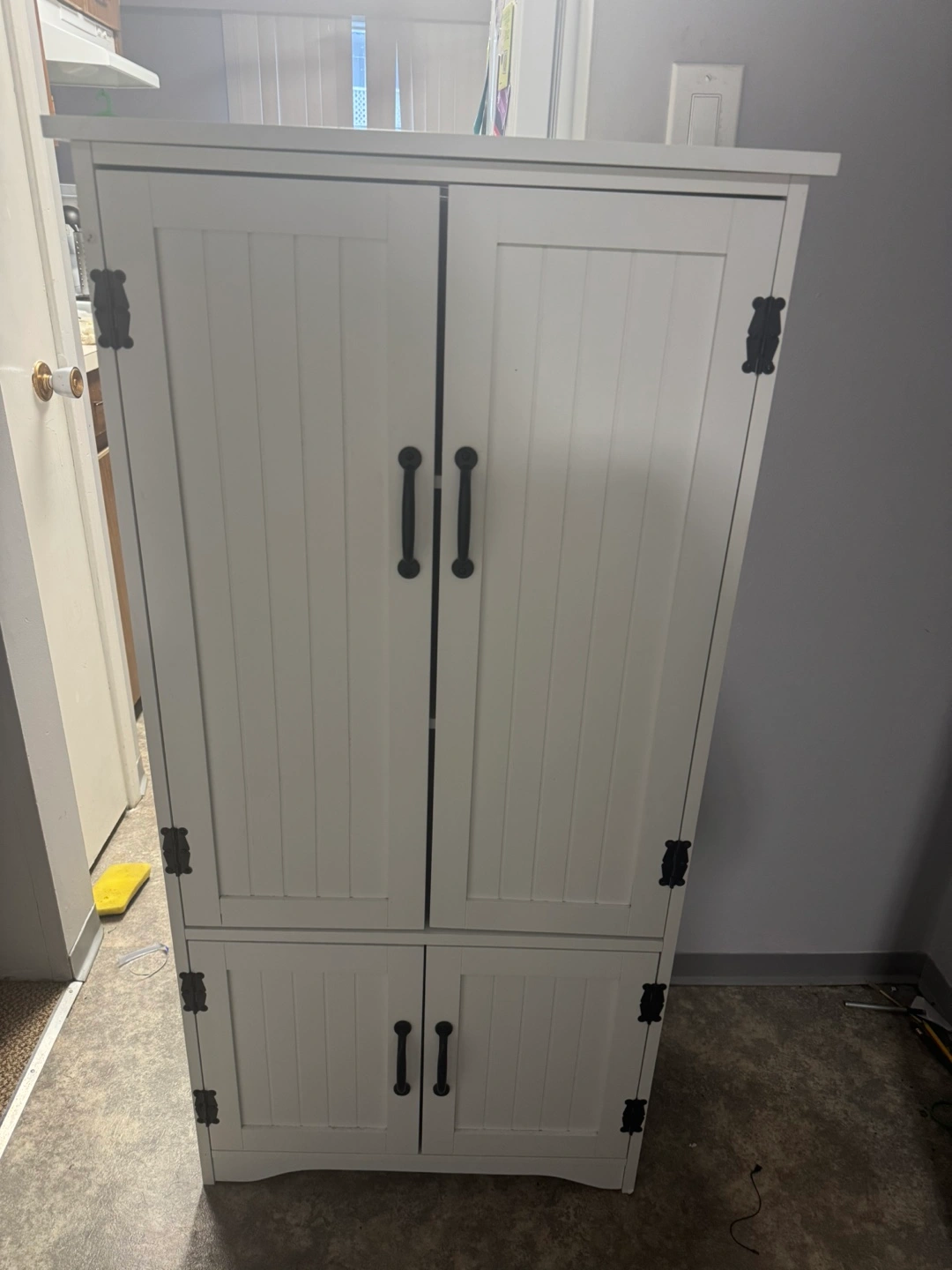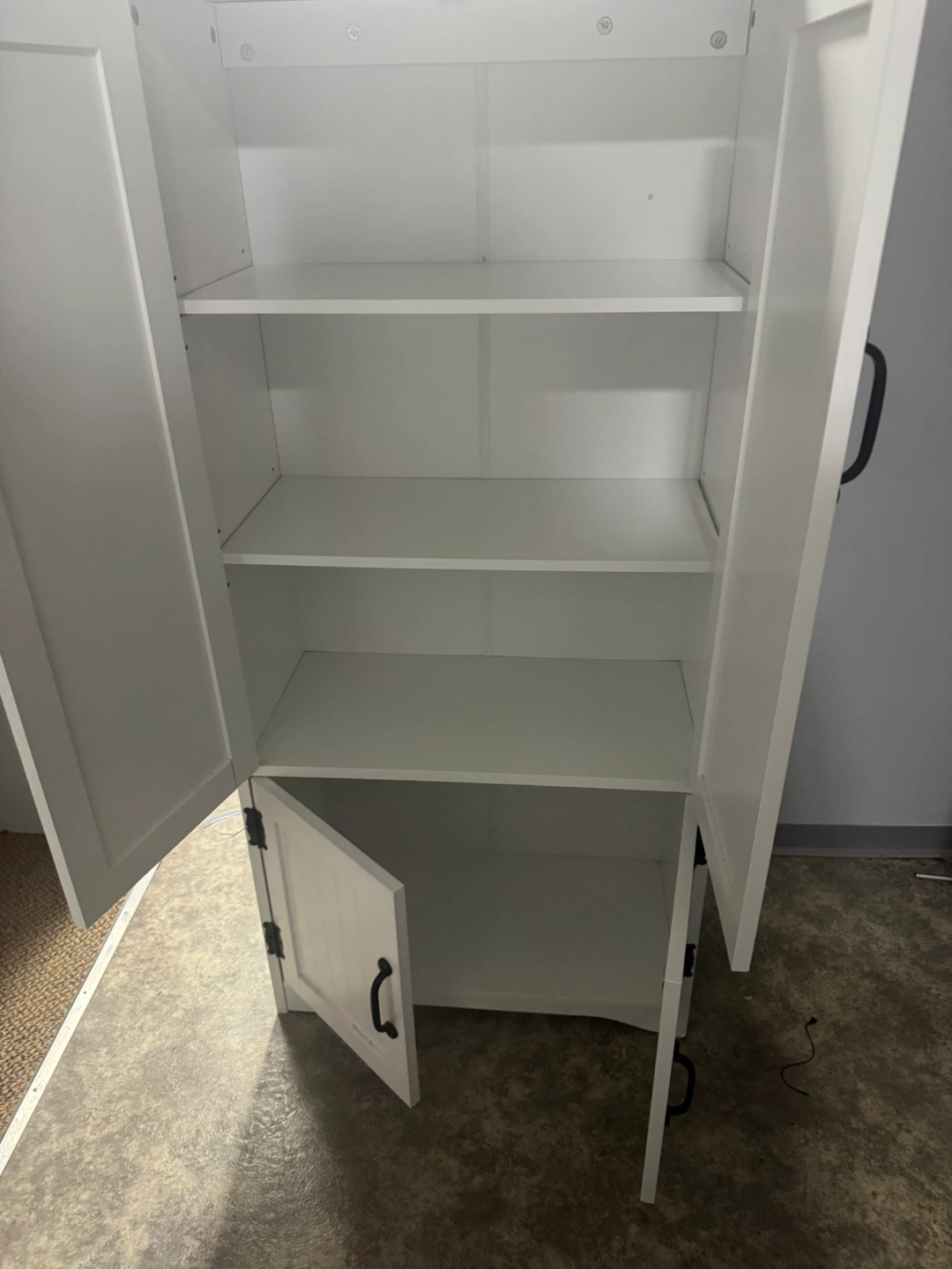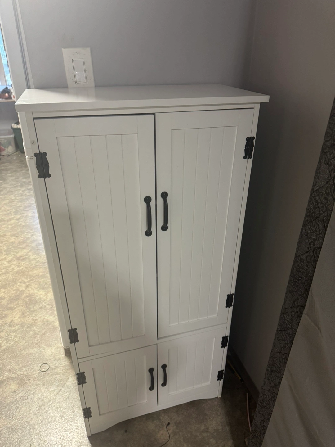 Cute little cabinet! It’s just over a meter tall. Perfect to store towels and linens (that’s what i did) but could literally store whatever you want! In great condition.