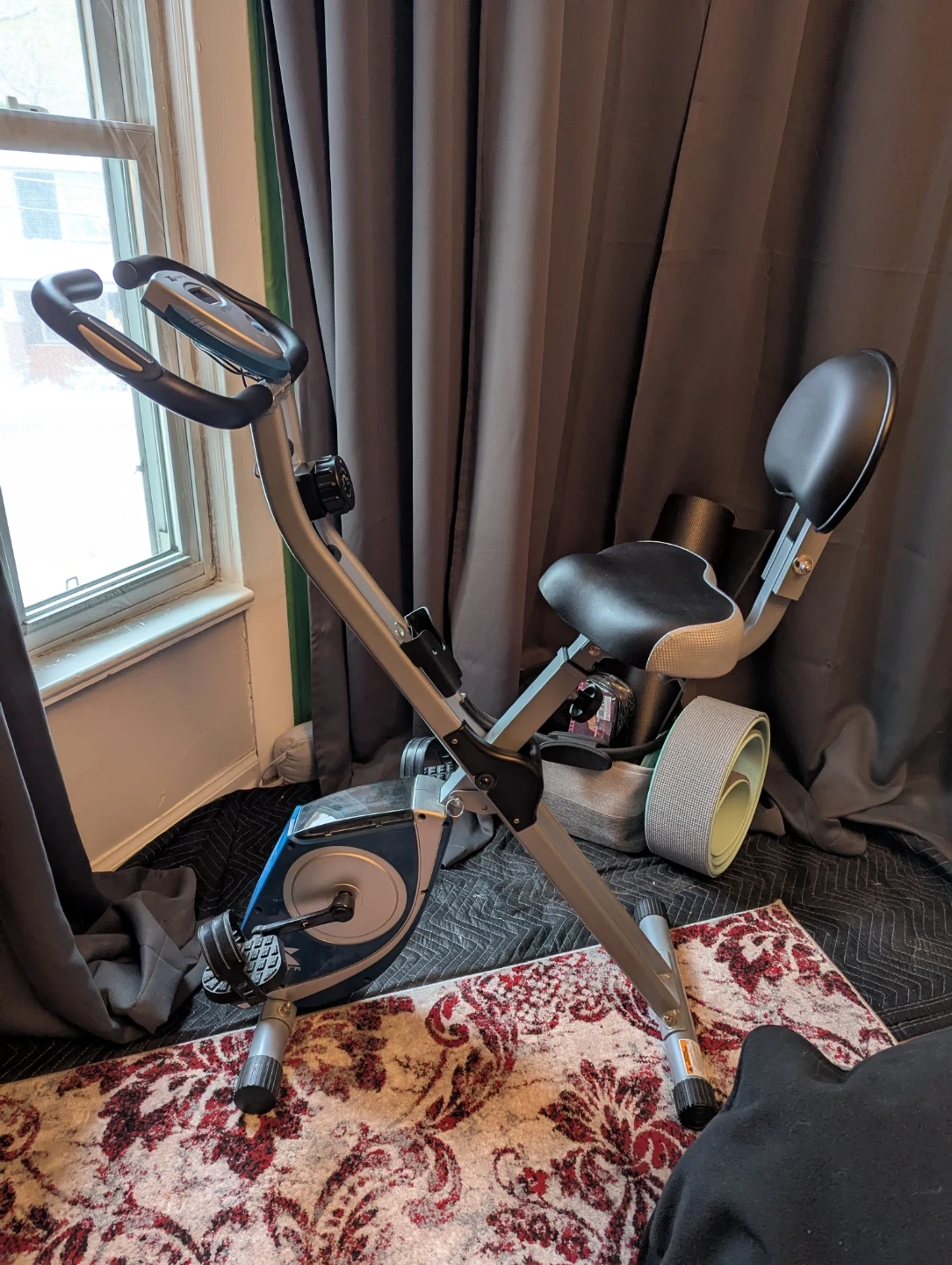 Exercise bike that can be compacted for small spaces storage. Like new, only used a handful of times. Available for pickup only.