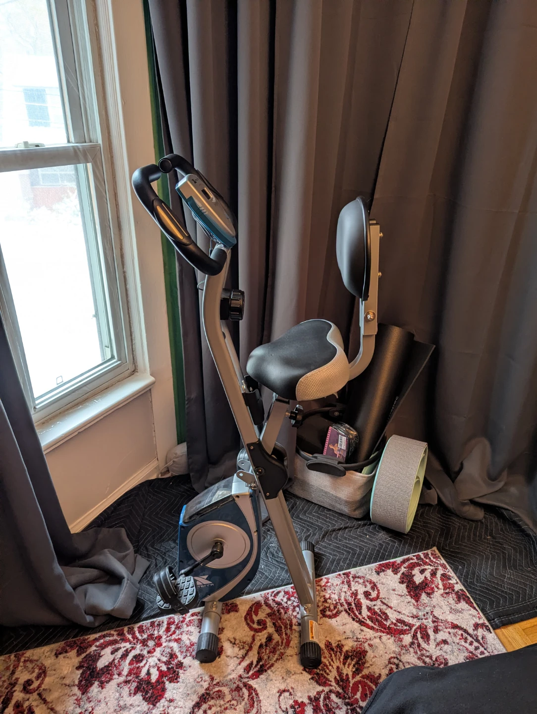 Exercise bike that can be compacted for small spaces storage. Like new, only used a handful of times. Available for pickup only.