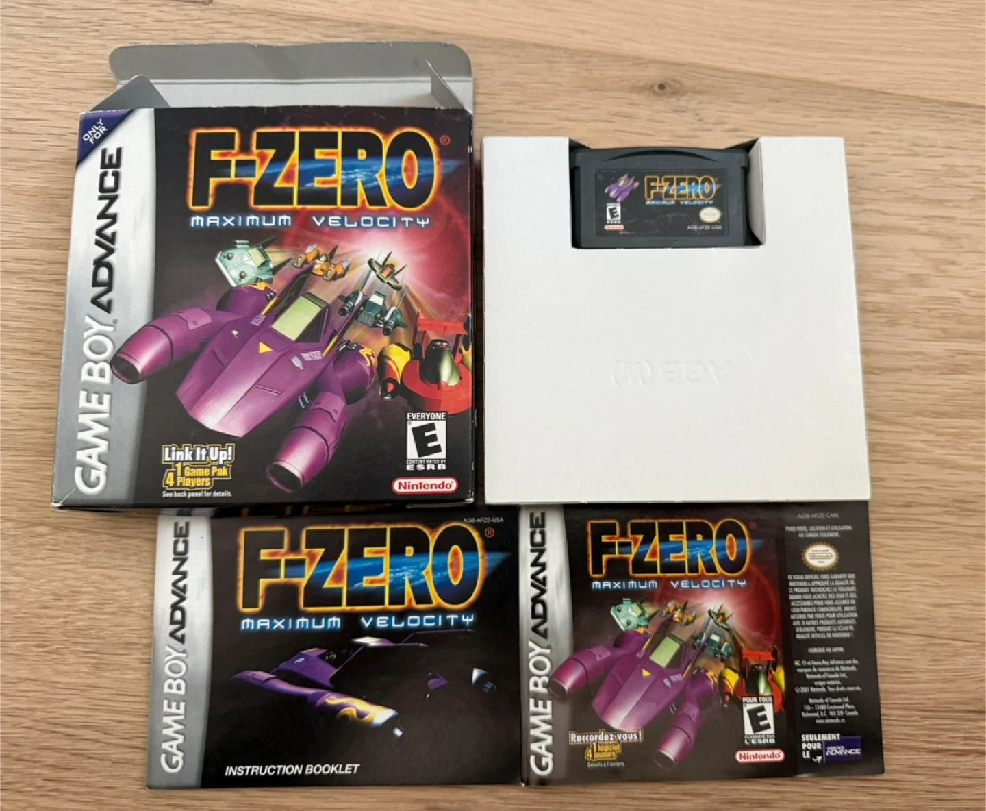 This is the F-Zero Maximum Velocity game for Game Boy Advance. It includes the game cartridge, instruction booklet, and original box. Link it up with one other Game Pak for 4-player action!